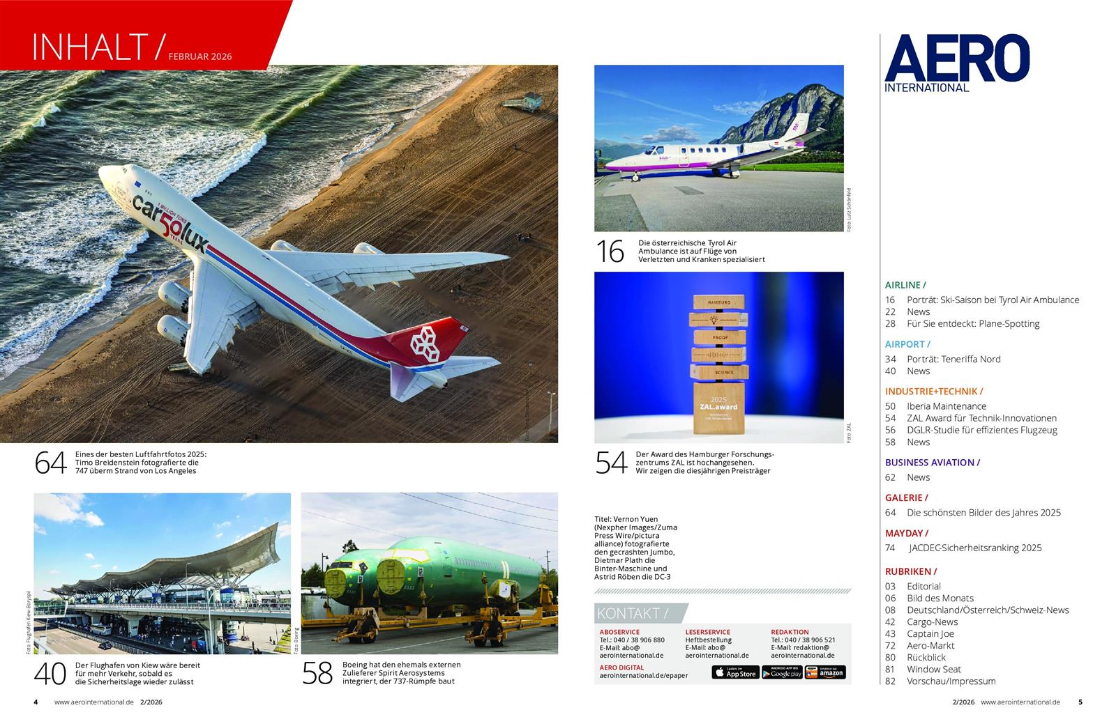 Lufthansa begeht ihren 100. Geburtstag 2026 und führt die neue Kabineneinrichtung Allegris ein, die erstmals in der A350 zum Einsatz kommt. Ein Praxisbericht, Interview mit CEO Jens Ritter und Einblicke in die Flottenmodernisierung prägen diesen Schwerpunkt.