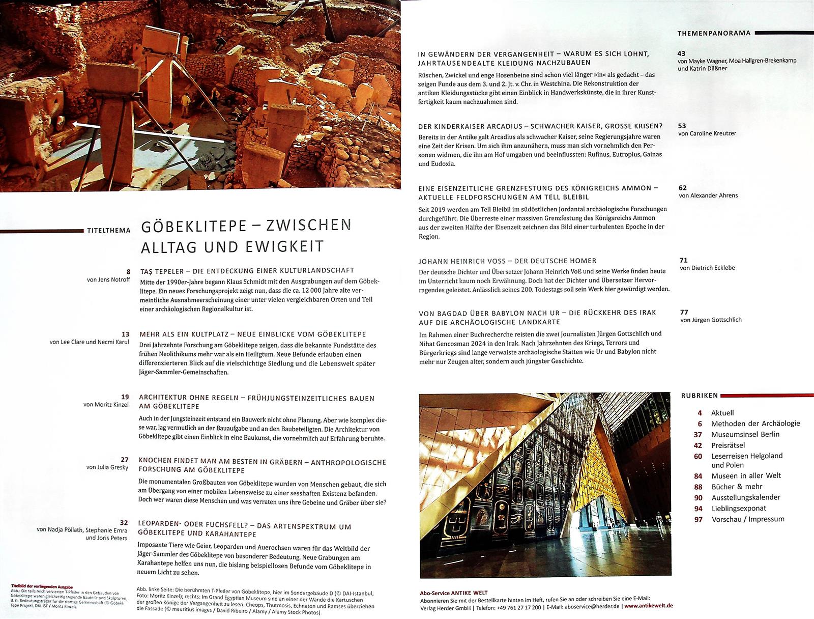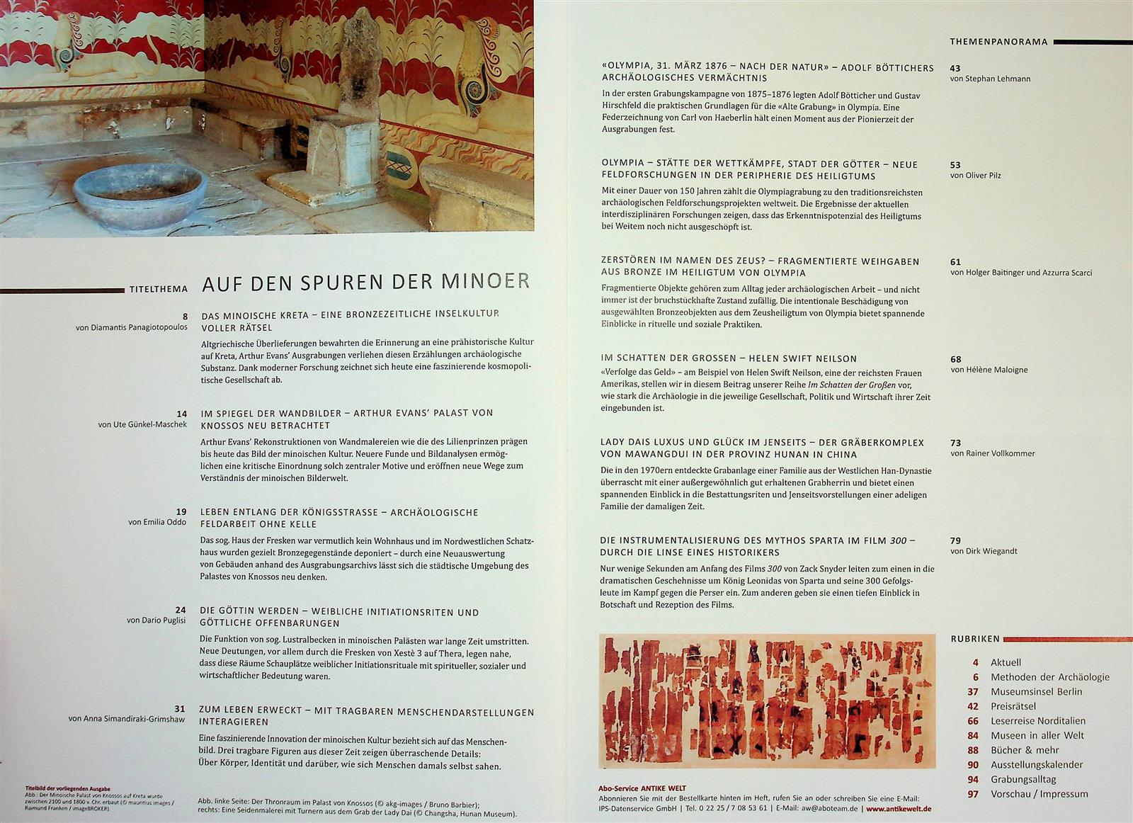 ANTIKE WELT erscheint alle zwei Monate und beschäftigt sich mit archäologischen und kulturellen Ereignissen. Mithilfe von hochwertigen Bilderstrecken, werden aktuelle Forschungsergebnisse internationaler Grabungen der Archäologie präsentiert. Darüber hinaus verfügt die Zeitschrift über zahlreiche Rubriken wie „Aktuell“, „Was geschah noch“, „Museen in aller Welt“, „Perspektivenwechsel“ und vielen weiteren. Hierdurch wird jegliches Wissen aufgefrischt und auf den neuesten Stand der Forschung gebracht. Ein Ausstellungskalender, informiert über alle relevanten Termine und rundet das kompakte Magazin ab.