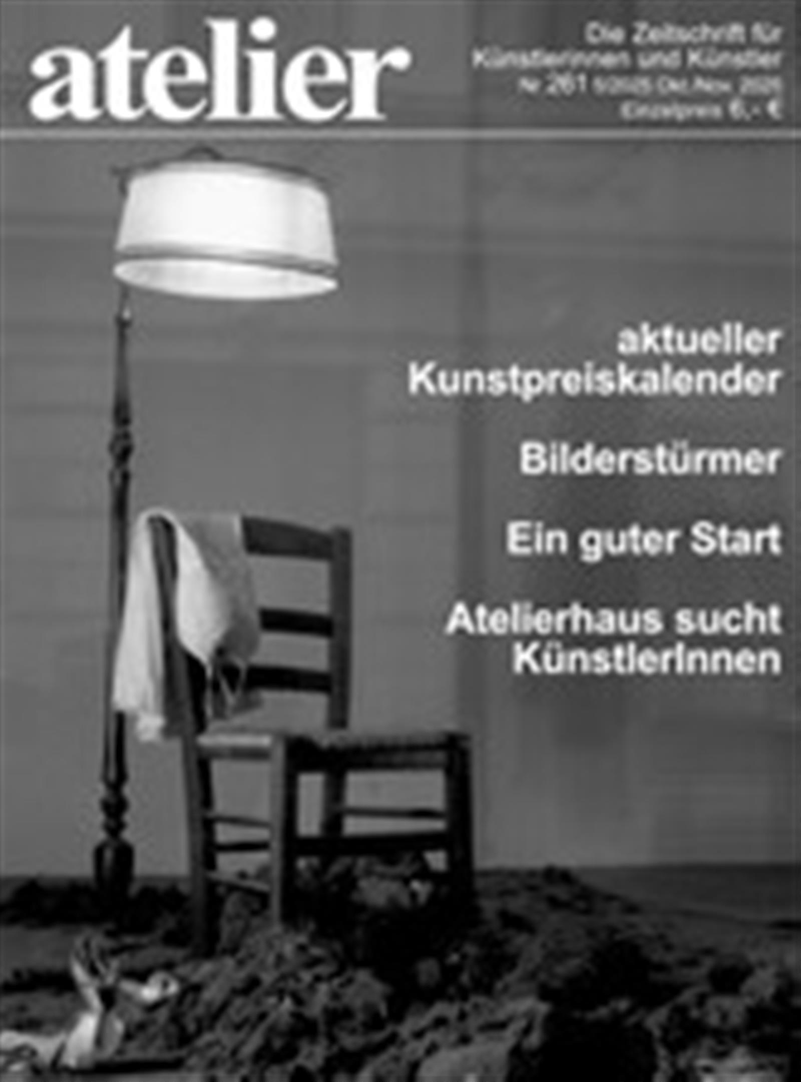 Atelier ist die berufsspezifische Fachzeitschrift für bildende Künstlerinnen und Künstler in Deutschland. Atelier bietet Information und Service für den Kunstmarkt, Hinweise auf Ausstellungsmöglichkeiten, Kunst und Recht, News über berufsspezifische Informationen der bildenden Künstlerinnen und Künstler sowie Fördermöglichkeiten und Tipps werden in jeder Ausgabe publiziert.