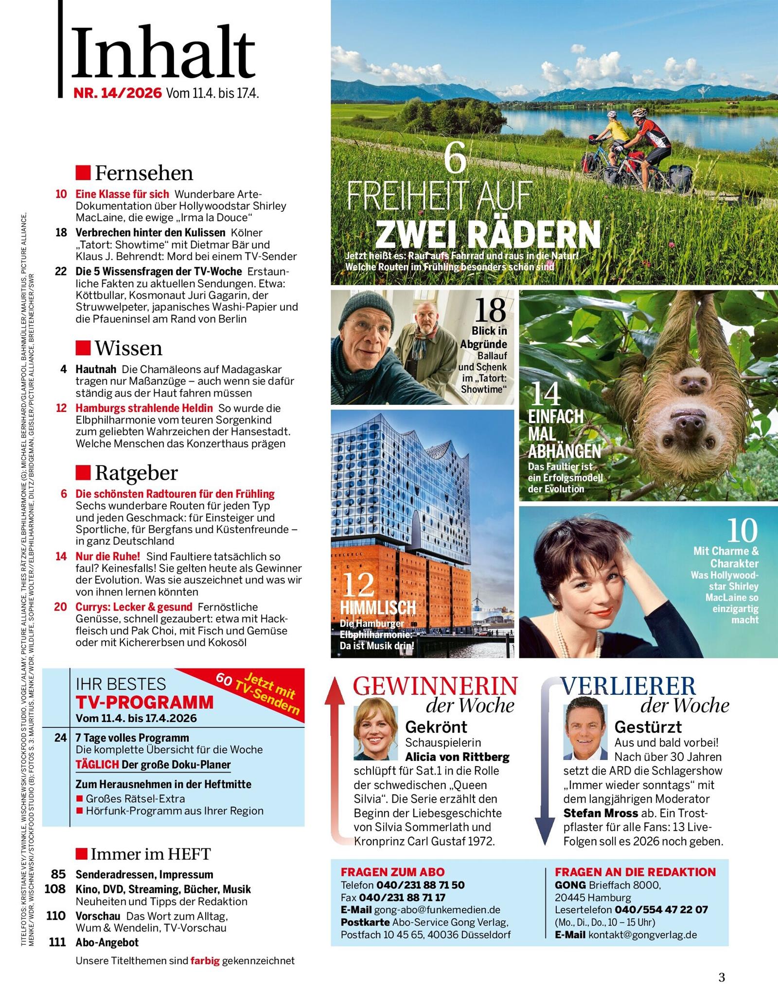 Mit Bild + Funk findet sich das Wichtigste der kommenden Fernsehwoche in der Kategorie der wöchentlichen Fernsehzeitschriften. Hier informieren auch die HÖRZU und der Gong über das Programmangebot. Zu einem günstigeren Preis-/Leistungsverhältnis, aber mit großen Service- und Unterhaltungsteil sind die TV klar oder die Fernsehwoche in diesem Bereich zu finden. Viele weitere Titel mit unterschiedlichem Themenangebot sorgen ebenfalls für Kurzweil neben dem TV-Programm.