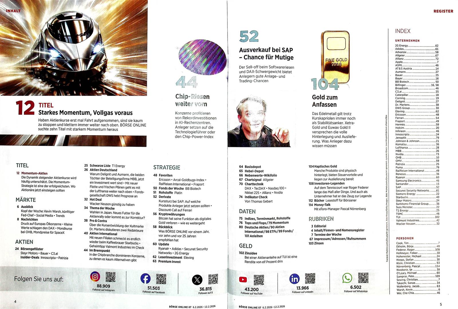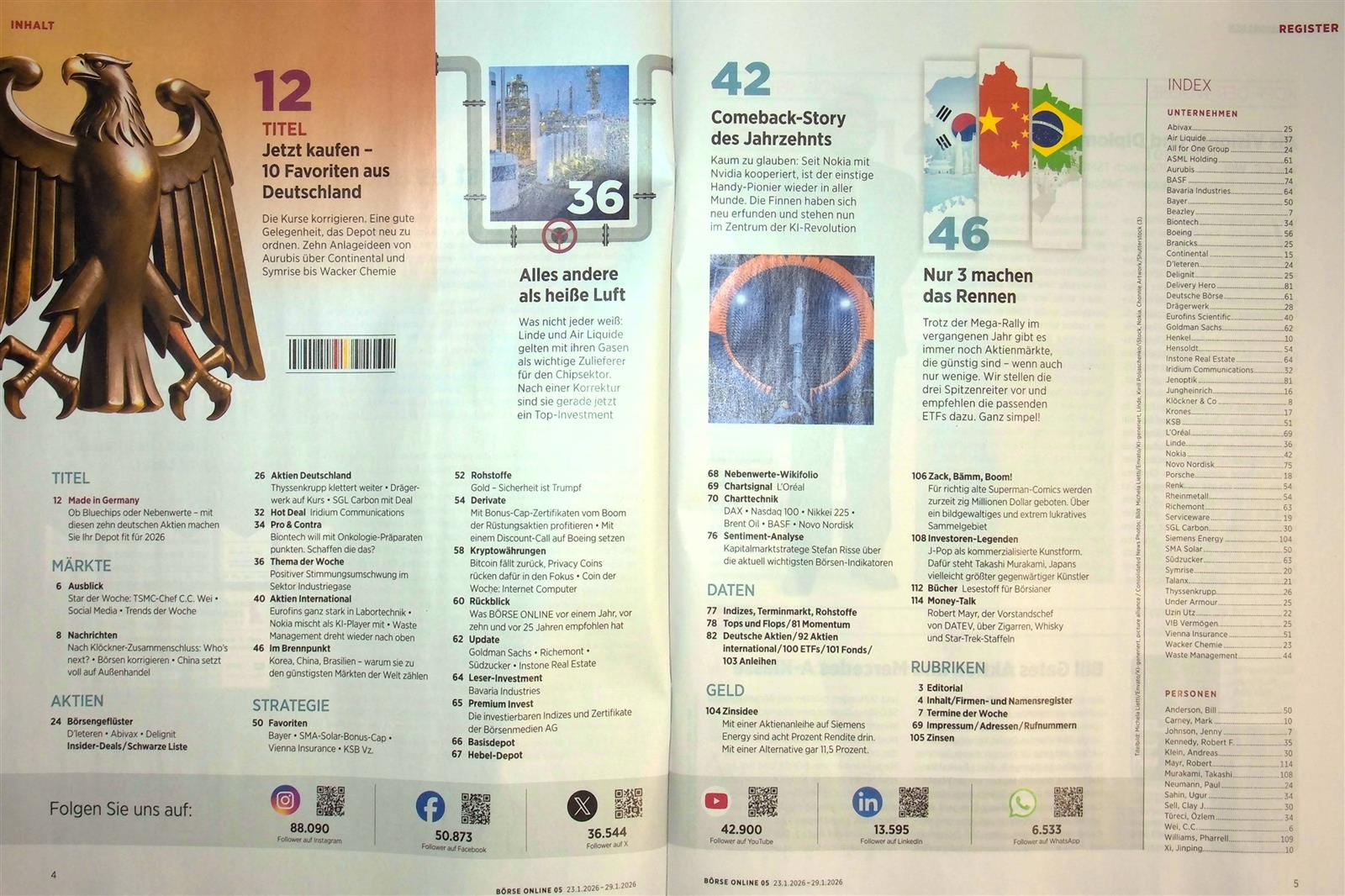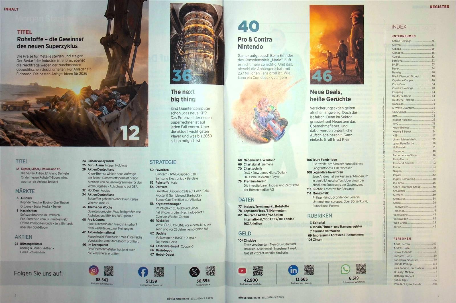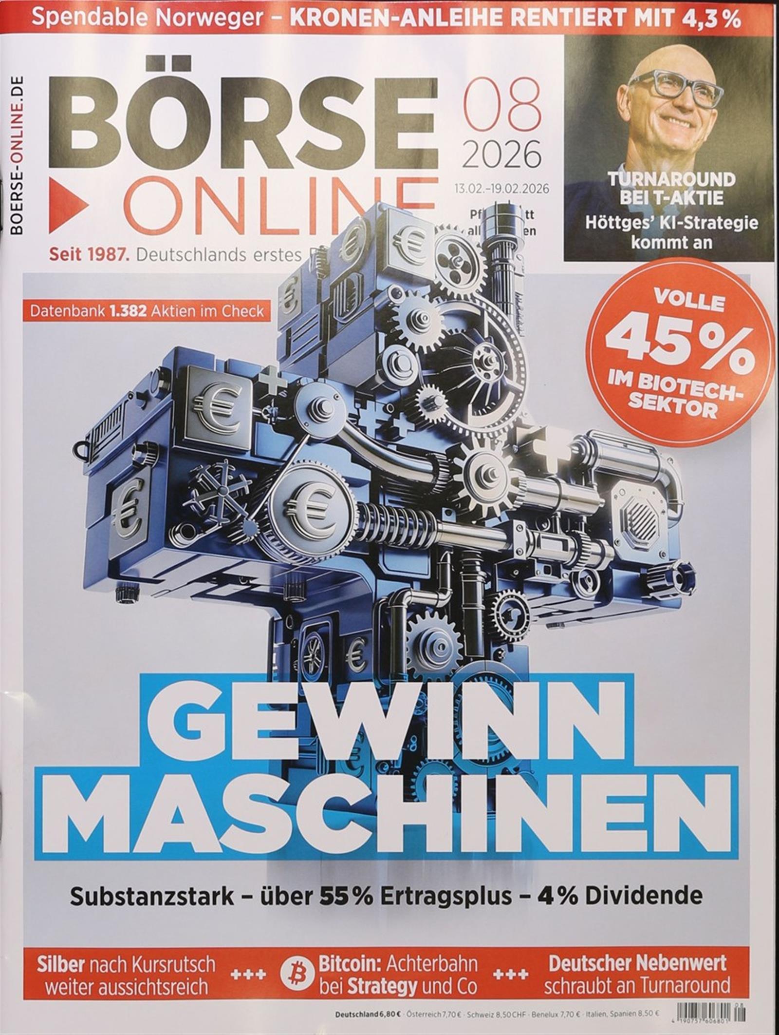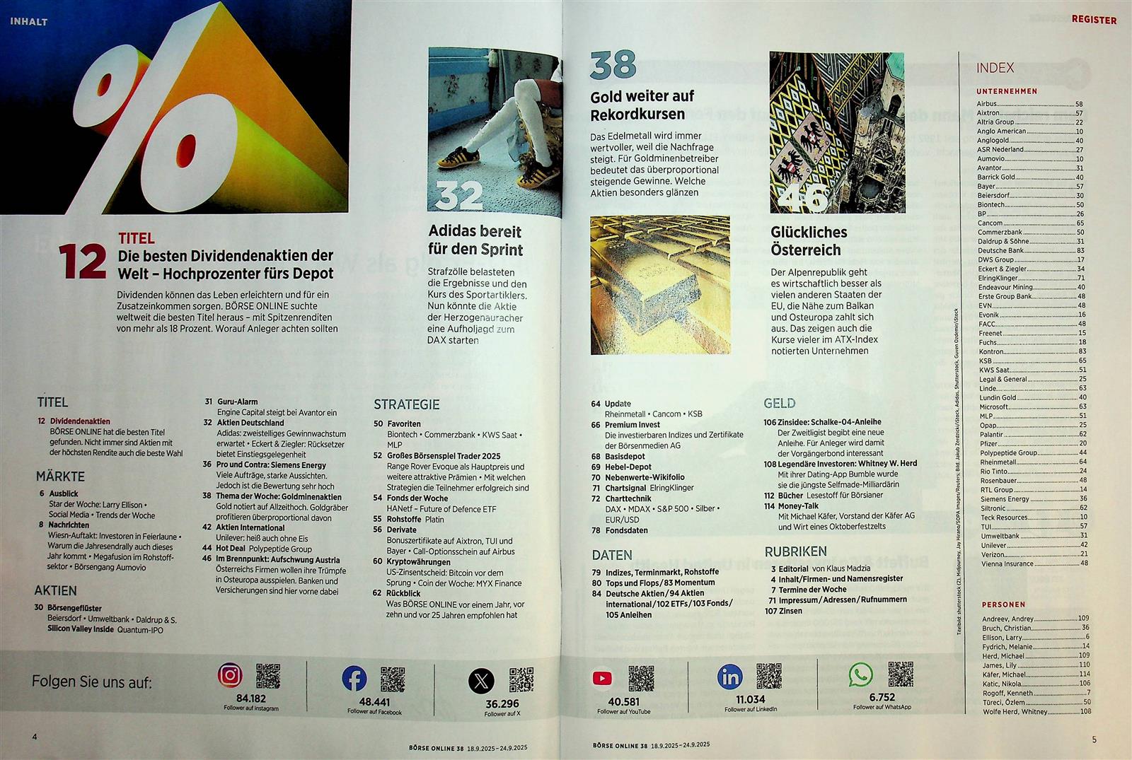 Aktuell, vielseitig, informativ, sachlich, spannend: Mir gefällt der Mix aus Titelthemen, Aktien, Fonds, ETFs, dazu noch Musterdepots, großer Statistikteil, über den Börsenrand kucken und vor allem die journalistische Qualität , weniger reißerische Titel.