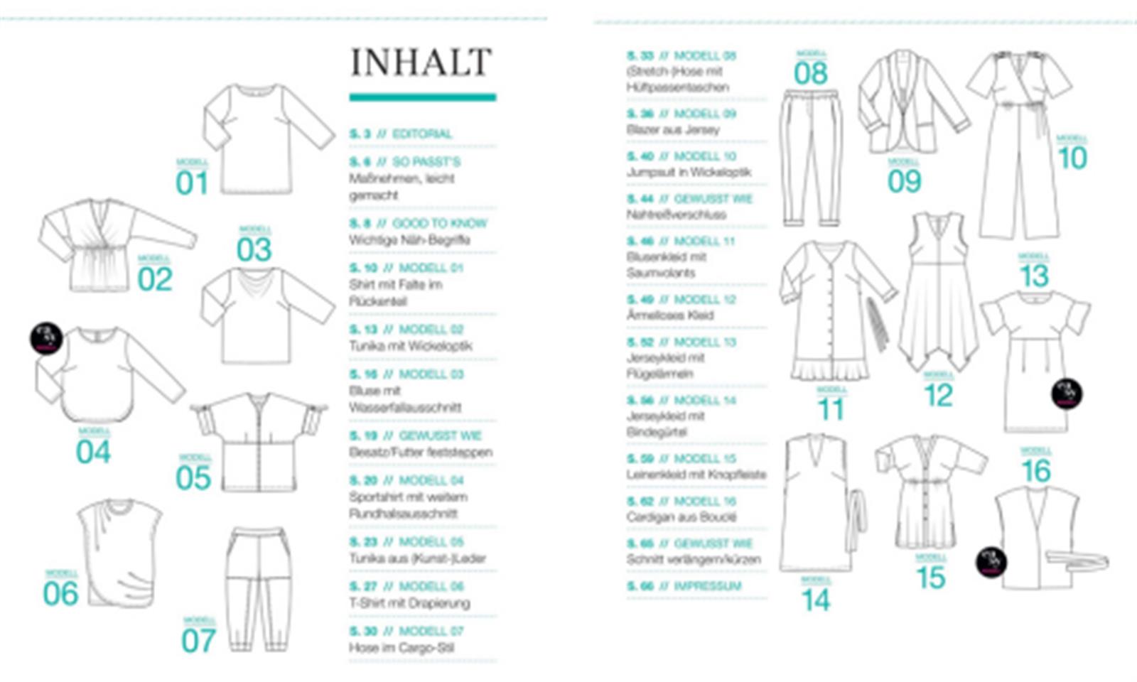 • Fertigschnittbogen für 16 Schnittmuster