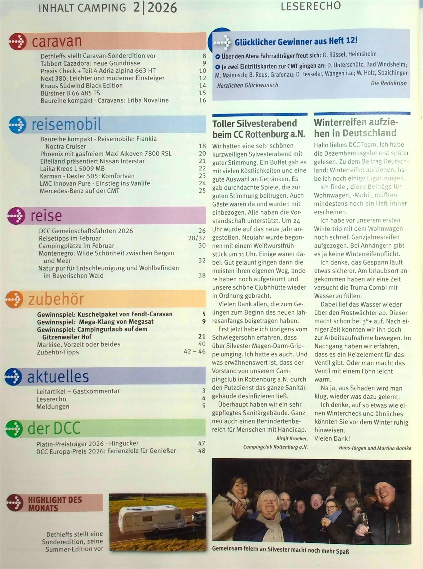 Die Zeitschrift Campingbietet eine breite Palette von Inhalten, die speziell für Camping-Enthusiasten und Outdoor-Liebhaber konzipiert sind. Testberichte zu Zelten, Wohnmobilen und Camping-Ausrüstungen helfen Lesern, fundierte Kaufentscheidungen zu treffen. Zudem werden Reiseziele und Campingplätze in Deutschland und Europa vorgestellt, die sowohl für Familien als auch für Abenteurer geeignet sind. Die Zeitschrift enthält auch nützliche Tipps und Tricks zum Campen, einschließlich Ratschlägen zur Zubereitung von Mahlzeiten im Freien und zur Auswahl der richtigen Ausrüstung. Außerdem werden spannende Interviews mit erfahrenen Campern und Experten geführt, die inspirierende Geschichten und wertvolle Einsichten teilen.
