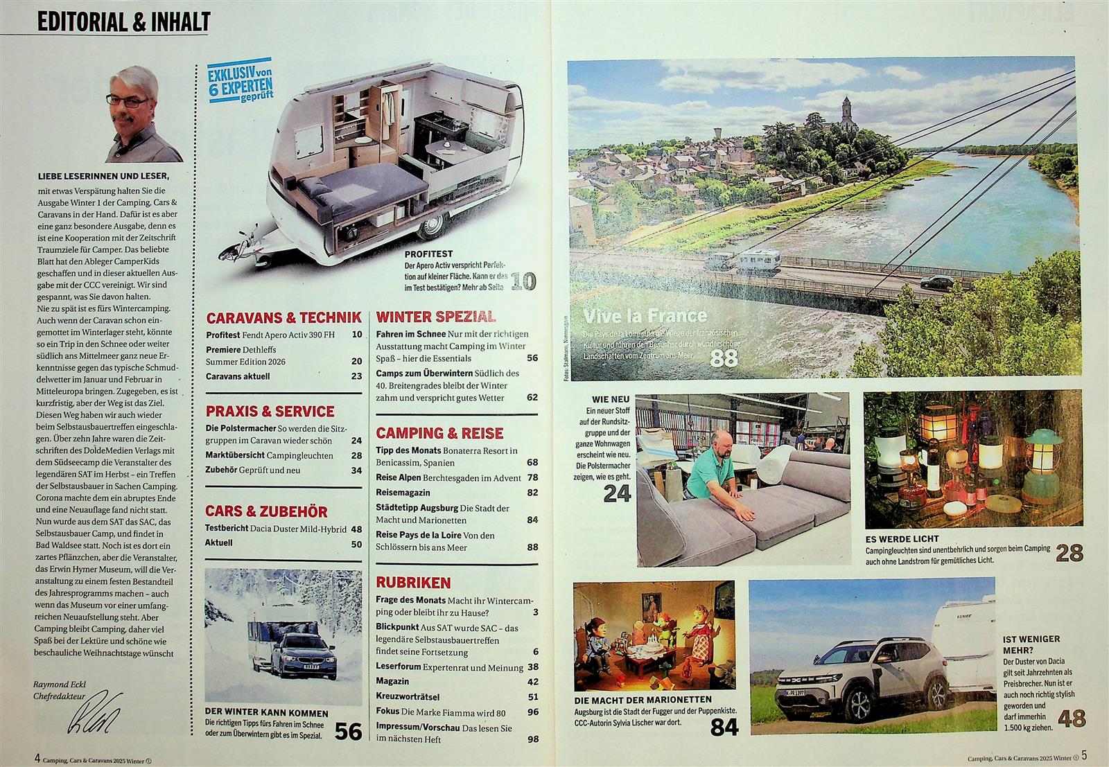 Die Zeitschrift Camping Cars + Caravansbietet umfassende Inhalte für campingbegeisterte Leser. Jede Ausgabe enthält aktuelle Tests von Wohnwagen und Zugfahrzeugen sowie interessante Praxis- und Technik-Beiträge rund ums Camping. Leser finden auch nützliche Reisetipps, spannende Reisereportagen und Informationen über neue Trends aus der Branche. Der Serviceteil bietet hilfreiche Tipps zum Einbau von Zubehör und aktuelle Neuheiten. Abonnenten genießen den Vorteil eines e-Papers, während Einzelkäufe am Kiosk erhältlich sind. Verpassen Sie keine Ausgabe und bleiben Sie informiert über alles, was mit Camping und Caravans zu tun hat!