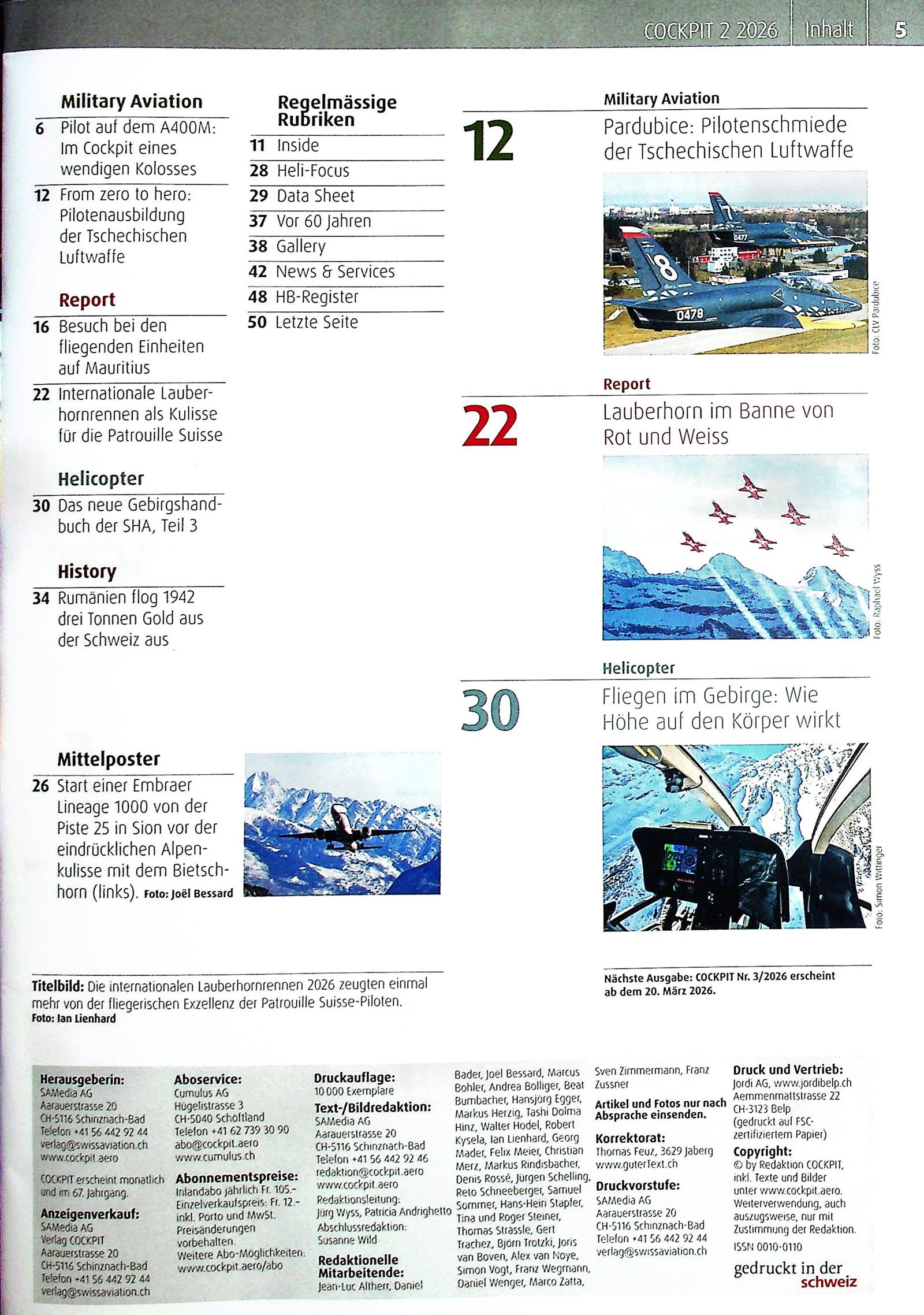 Cockpit Schweiz bringt monatlich einen Querschnitt durch die gesamten Luftfahrtthemen. Diese reichen von Military Aviation, über Civil Aviation, vermehrt auch über Business Aviation und Helicopter.