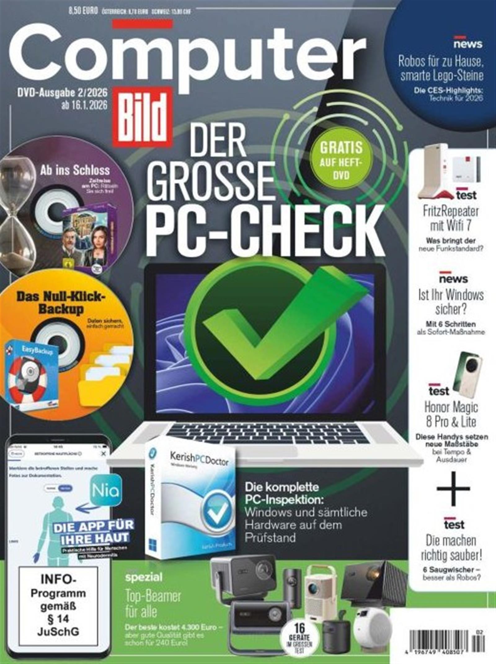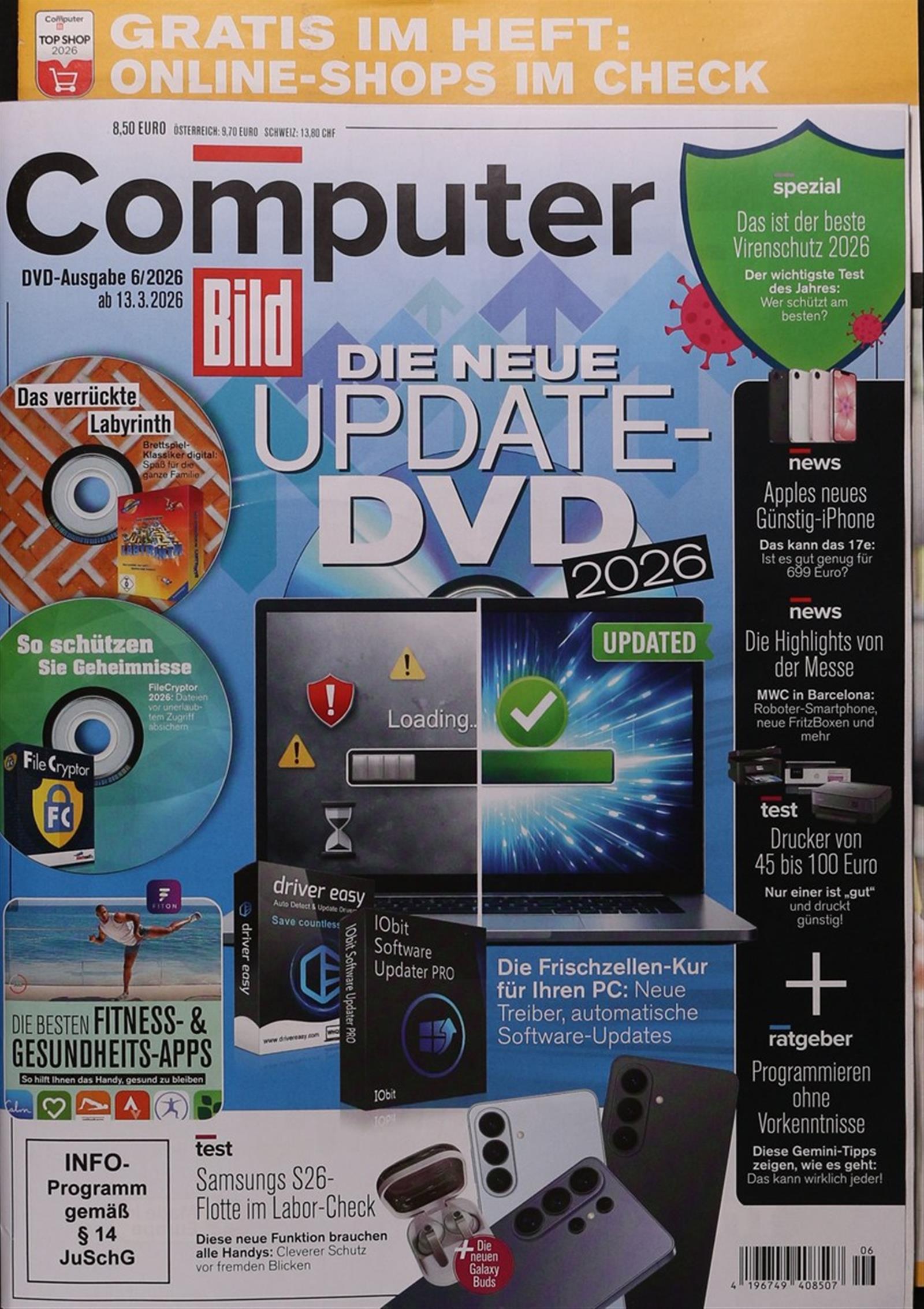 Sie ist die auflagenstärkste deutsche Computerzeitschrift und nimmt auch innerhalb Europas die Pole Position ein. Die Rede ist von der Computer Bild , die seit 1996 jeweils zweiwöchentlich erscheint.