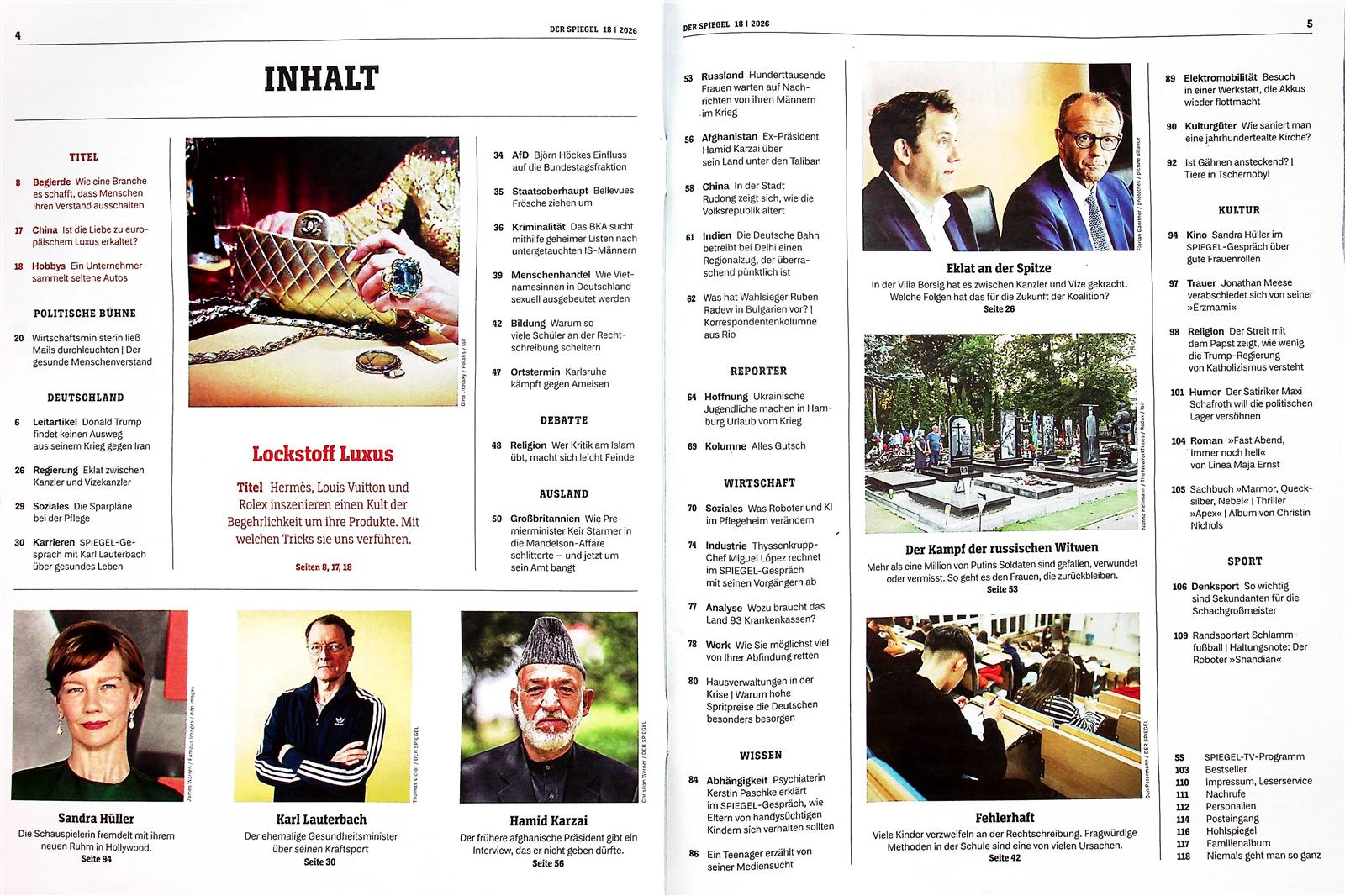 DER SPIEGEL, seit 1947 Deutschlands Leitmedium für investigativen Journalismus, prägt maßgeblich die politische Diskussion. Wöchentlich liefert DER SPIEGEL tiefgründige Analysen und umfassende Berichterstattung zu aktuellen Ereignissen. Mit einer beeindruckenden Auflage von etwa 700.000 Exemplaren (IVW 2023, inkl. e-paper) erreicht das renommierte Nachrichtenmagazin Woche für Woche über 12 Millionen Leser in Print und digital.