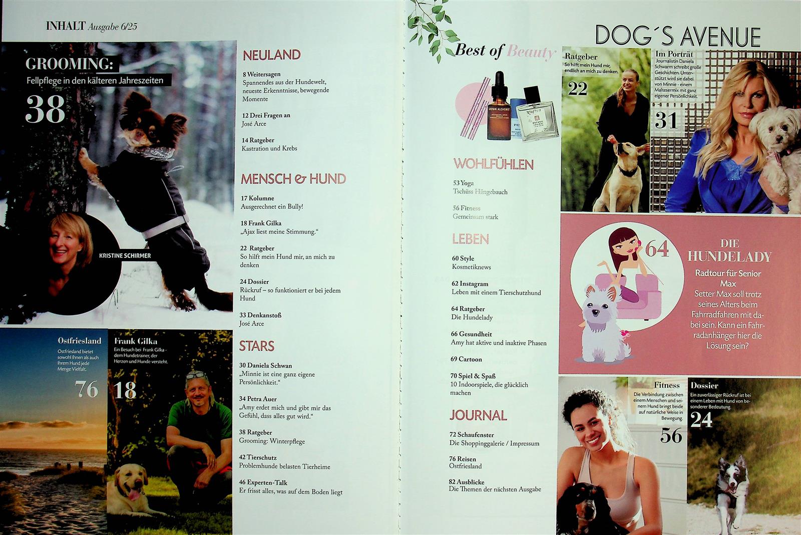 Eine wirklich gelungene Zeitschrift für Frau mit Hund. Schön, dass die Themen auch tiefergreifend sind und man trotzdem genügend zum Shoppen findet.