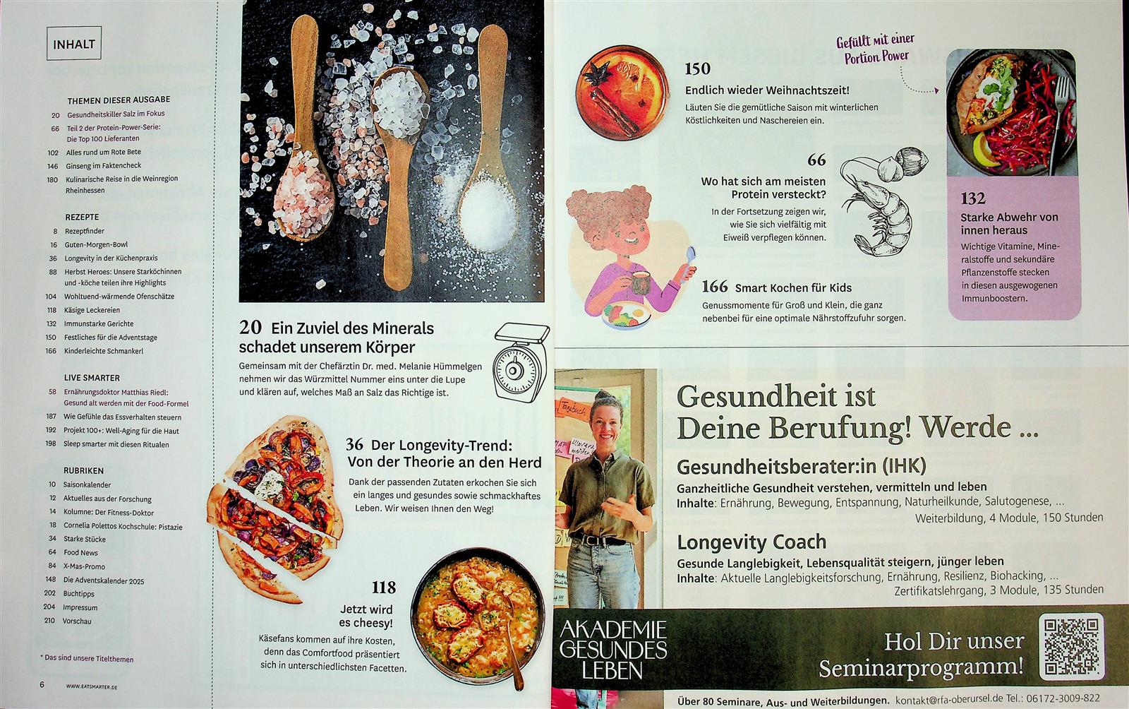 Eine Besonderheit der Eat Smarter ist deren Umfang, der deutlich über dem der meisten Mitbewerber liegt. Außerdem geht die Zeitschrift mit ihrer Rubrik Smart Kids auch auf die aktuellen Bedürfnisse und Probleme unserer Kleinen in Bezug auf die moderne Ernährung ein. Hier spielen zum Beispiel Themen wie Allergien und Unverträglichkeiten, vegetarische bzw. vegane Ernährung für Kinder oder auch das Aufräumen mit verbreiteten Mythen zur Kinderernährung eine Rolle.