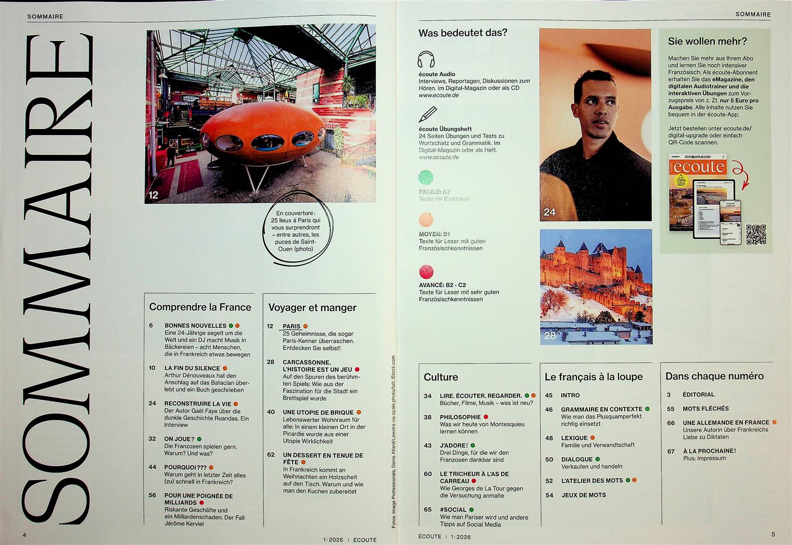 Seit der ersten Ausgabe im Jahr 1984 begeistert Ecoute mit einem einzigartigen Konzept: Französisch lernen durch Lesen, Hören und Entdecken – sprachlich abgestuft, inhaltlich hochwertig und stets aktuell. Mit einer Auflage von über 35.000 verkauften Exemplaren zählt Ecoute zu den beliebtesten Sprachmagazinen im deutschsprachigen Raum.