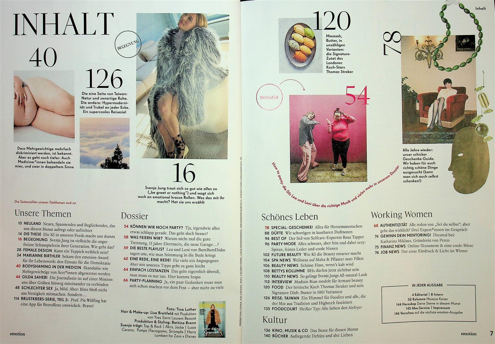 Mit der Dezember Ausgabe 2017 ist die Emotion einmal runderneuert worden. Sie ist eine ganz einzigartige Frauenzeitrschrift. Im Eigenverlag herausgegeben, schön aufgemacht, nicht oberflächlich und immer wieder inspirierend