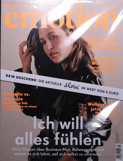 Die Emotion definiert den Bereich der Frauenzeitschriften neu und verfolgt einen anspruchsvollen Ansatz. Sie befindet sich damit in ein– und derselben Rubrik wie die Emma, die Joyce oder auch das Missy Magazine.