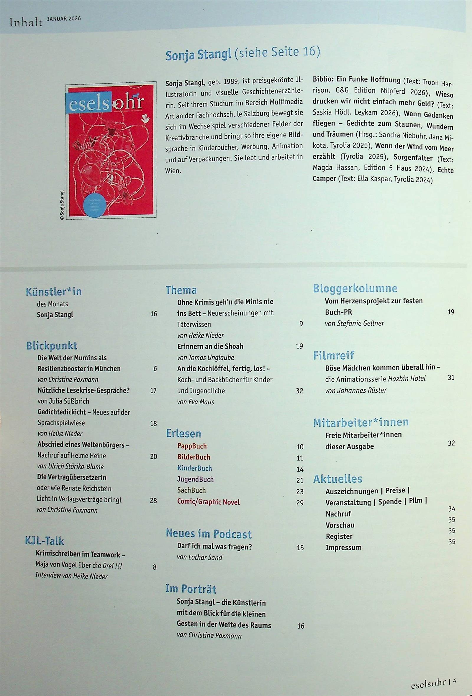 Seit 1982 ist die Eselsohr nun schon auf dem Markt und versteht sich ausdrücklich als Fachzeitschrift für Kinder– und Jugendliteratur.