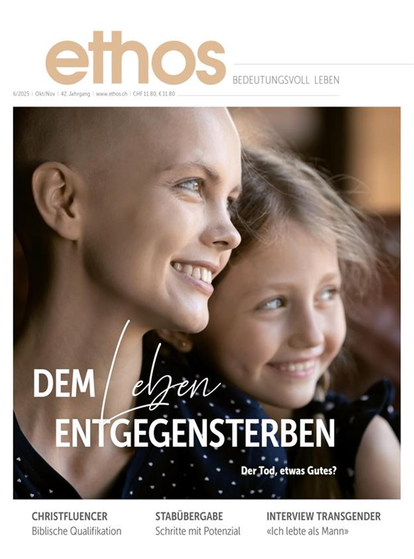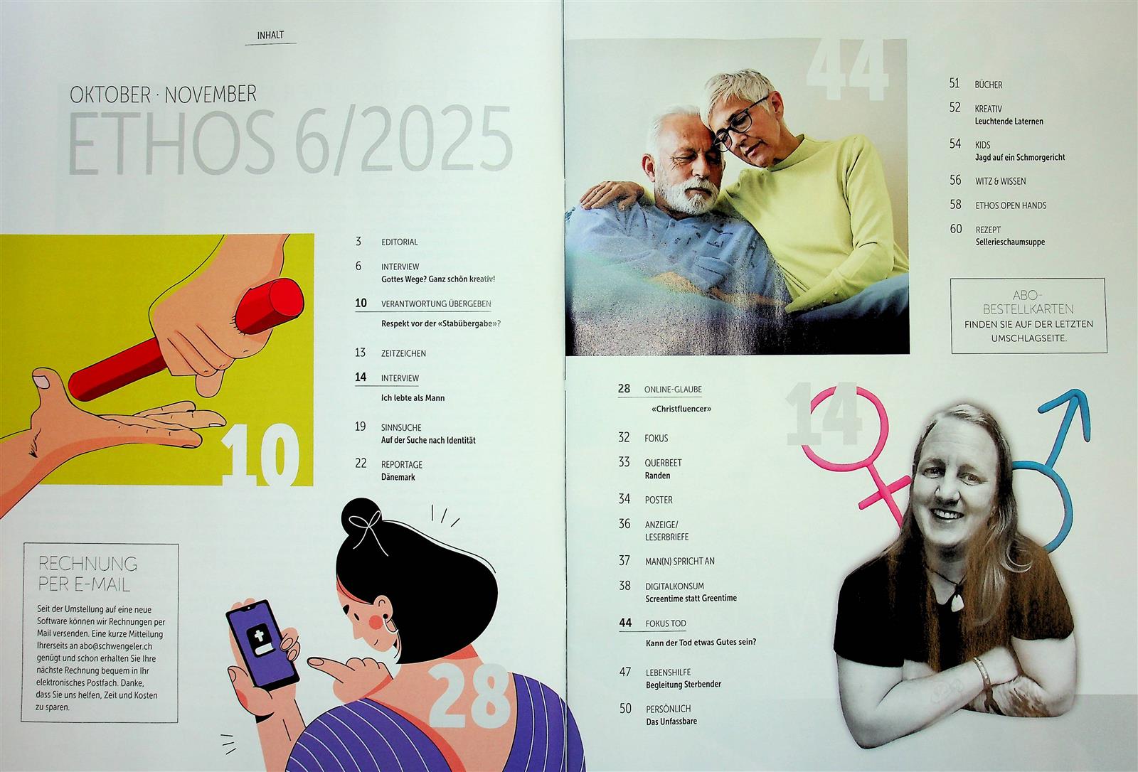 Ethos ist ein Blatt mit einem festen Standpunkt, das Ja zum Leben sagt. Die Themen drehen sich nicht nur um Religion im herkömmlichen Sinn, sondern erstrecken sich auf alle Alltagsfragen.