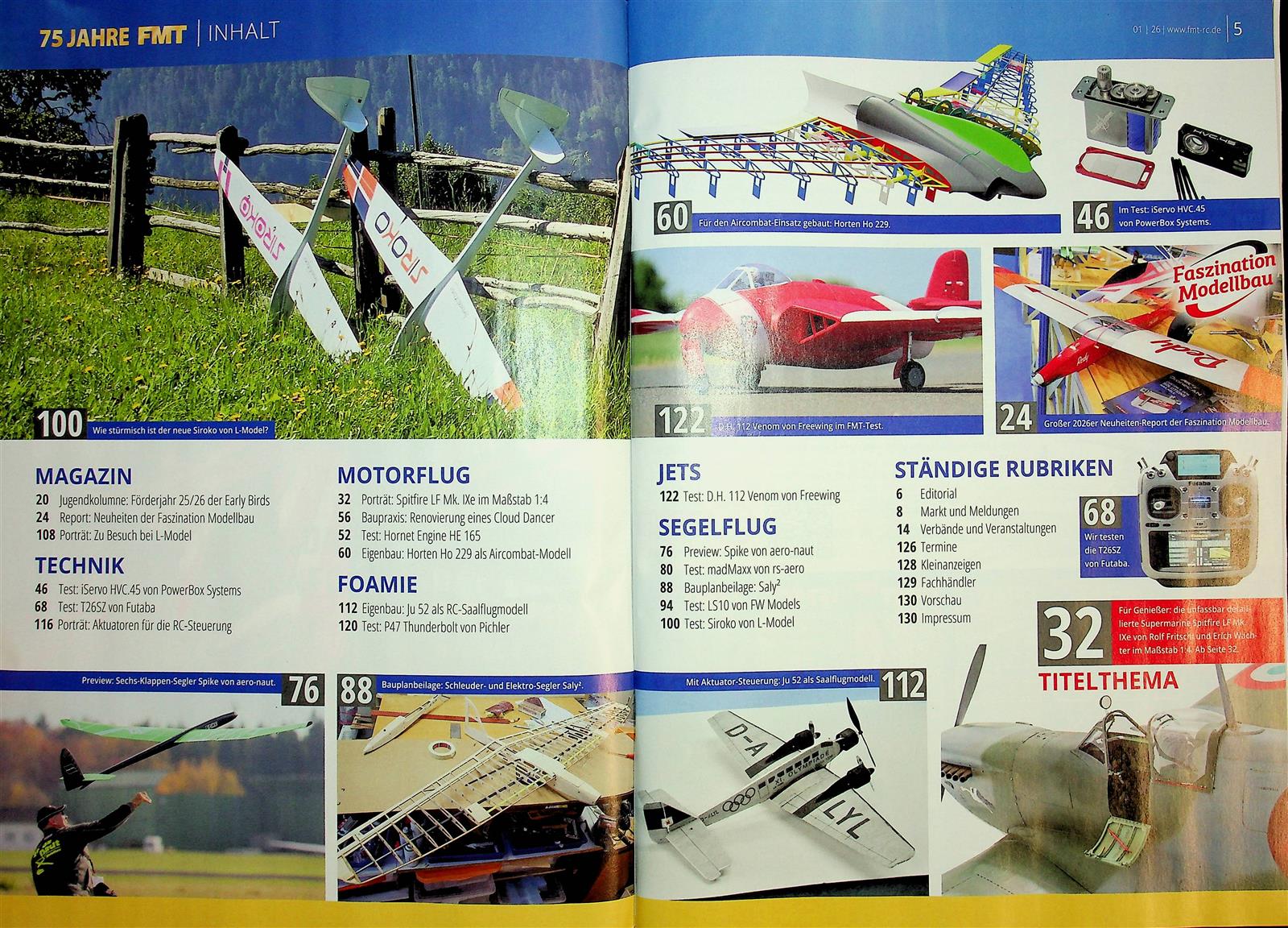 FMT Flugmodell und Technik erscheint 13 Mal im Jahr und hat sich voll und ganz dem Modellflug verschrieben. Das Magazin existiert bereits seit 1952.
