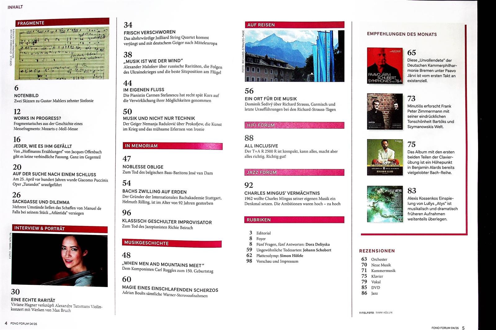 Das Magazin Fono Forum wurde erstmals 1956 herausgegeben und ist ein Magazin für klassische Musik und Jazz sowie Hifi-Geräte. Die Erscheinungsweise ist monatlich.