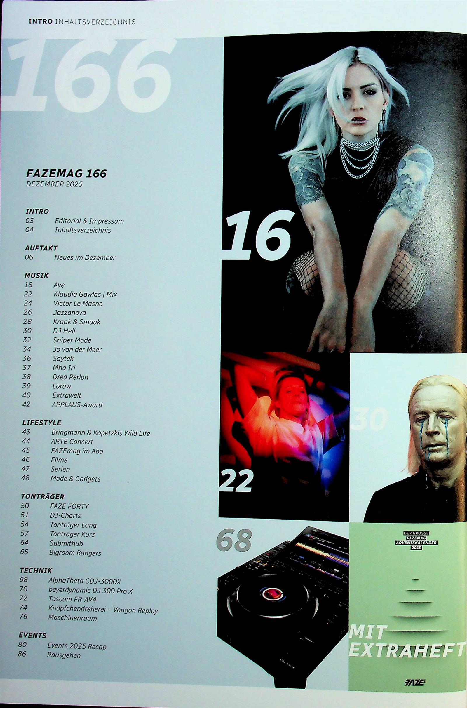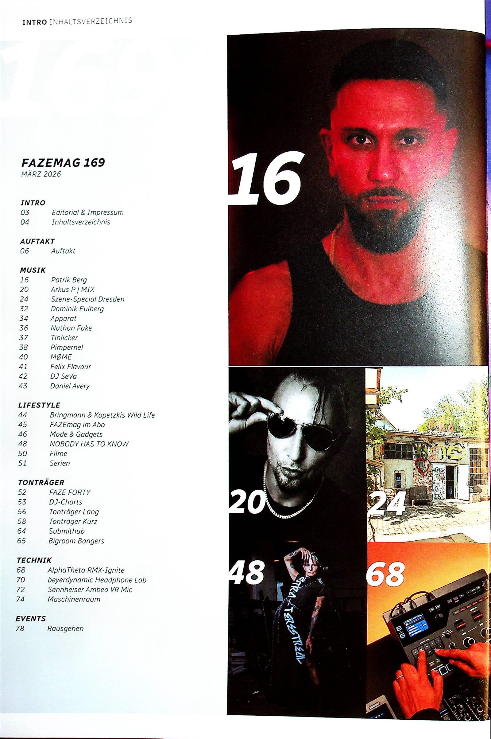 Das FAZE Magazin ist das einzige deutschsprachige Printmedium in der Szene der elektronischen Tanzmusik. Das Redaktionsteam dahinter zeichnet sich durch seine langjährige Erfahrung im Musikjournalismus aus und bringt so fundiertes Hintergrundwissen und die besten Kontakte in die Szene mit. Keine Sparte der Tanzmusik wird ausgelassen und sein untrügliches Gespür für neue Trends macht das Magazin ganz besonders.