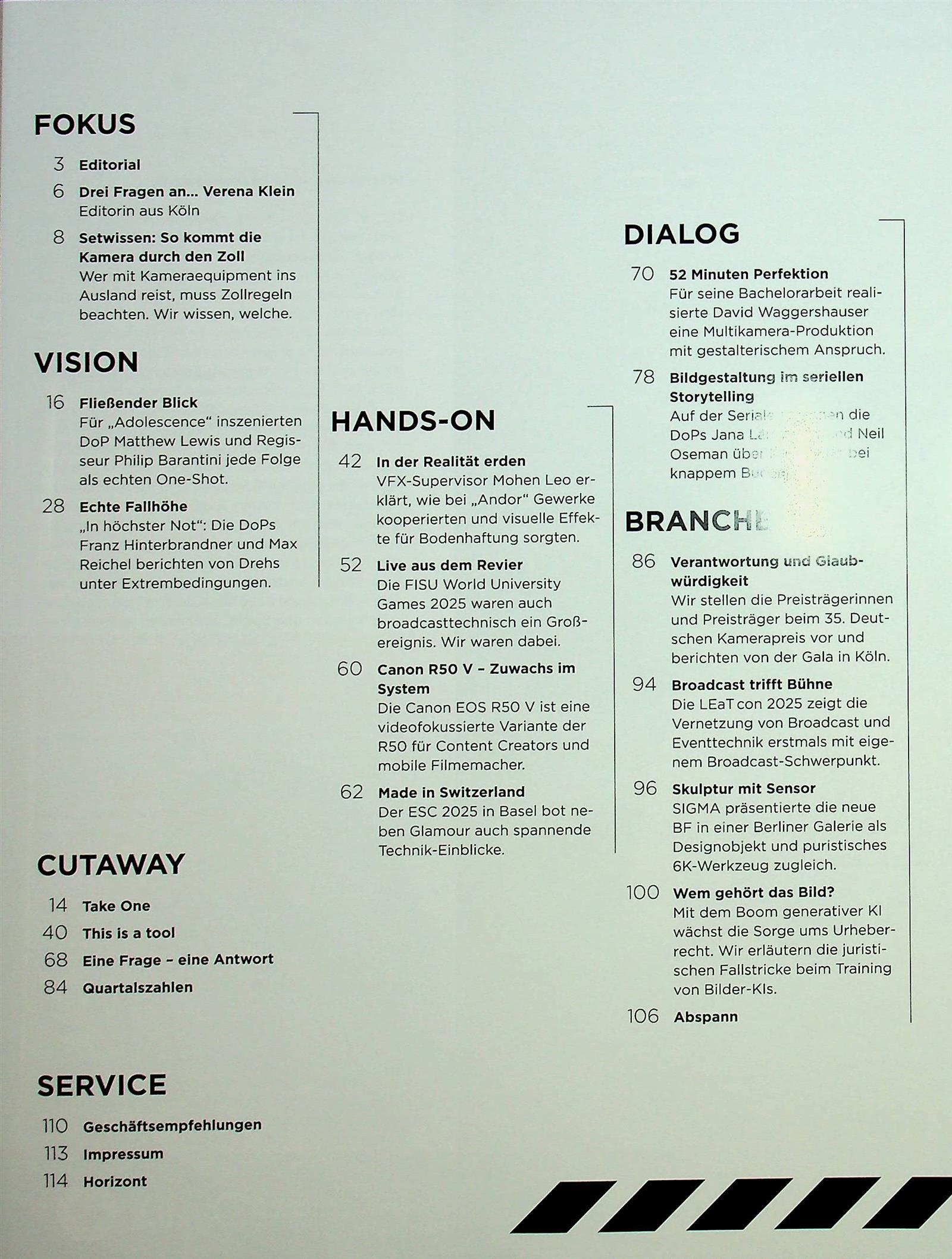 Fachzeitschrift der Film- und TV-Branche, für Medienschaffende aus Produktion, Postproduktion und Ausbildung.