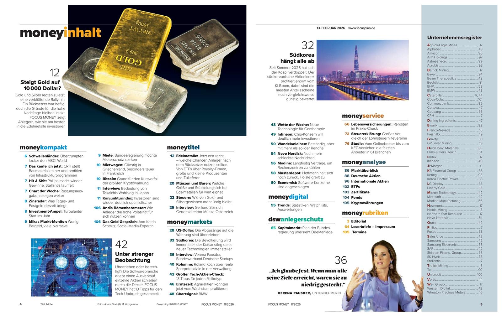 Das Magazin deckt ein breites Spektrum an Themen ab, von detaillierten Analysen zu Aktien, Fonds und Anleihen bis hin zu politischen Entwicklungen, die die Finanzmärkte beeinflussen. Leser finden fundierte Berichte und Kommentare zu Rohstoffen, Immobilien und Steuerstrategien. Regelmäßige Interviews mit Top-Entscheidern aus Industrie und Finanzwelt bieten tiefere Einblicke und machen das Focus Money Magazin zu einem umfassenden Begleiter für Anlageentscheidungen und wirtschaftliche Orientierung.
