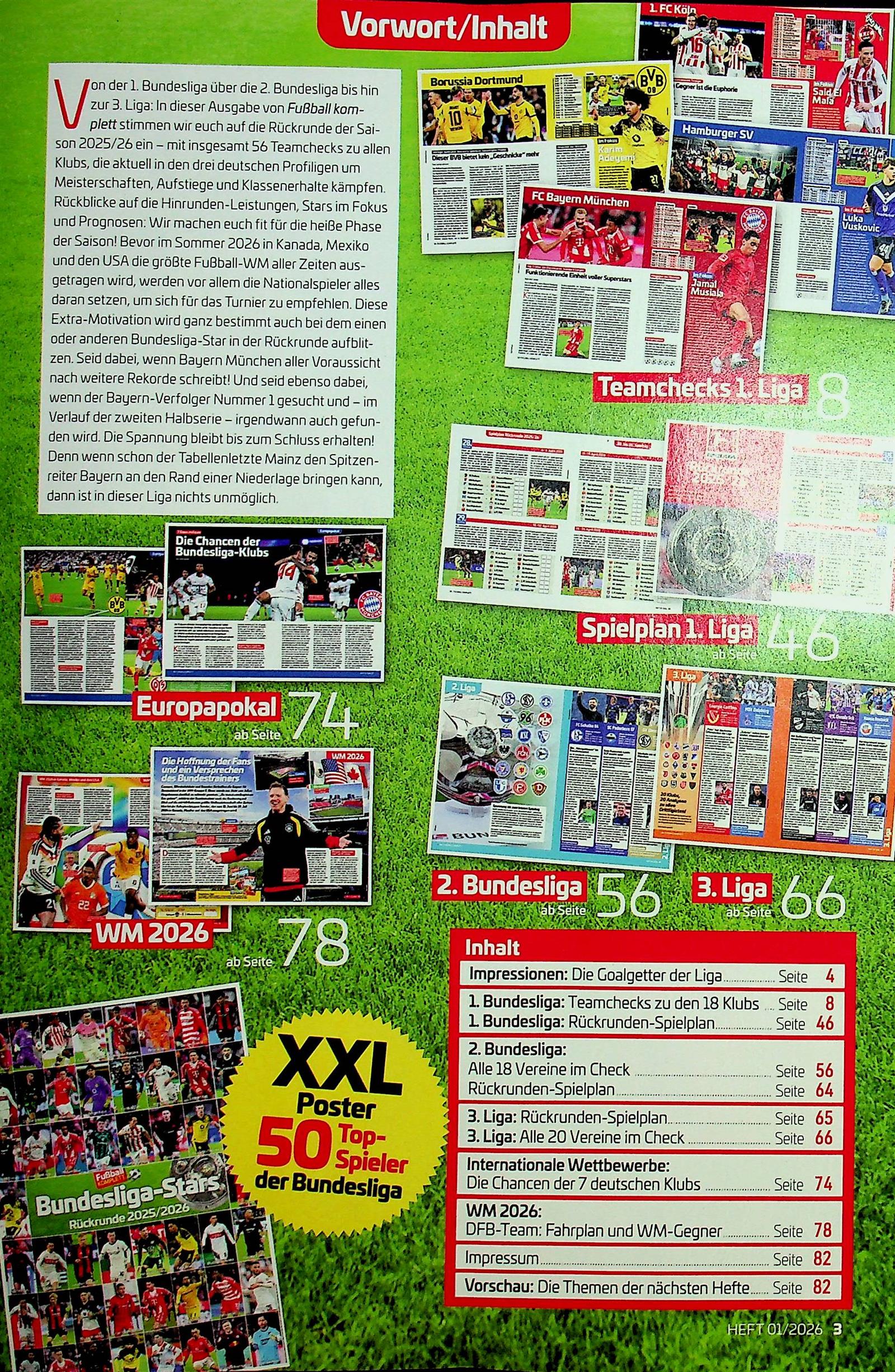 Das Fußball komplett Magazin ist eine führende Sportzeitschrift, die sich ausschließlich dem Thema Fußball widmet. In diesem Magazin finden Fußballfans umfassende Berichterstattungen zu nationalen und internationalen Fußballspielen, Spielergebnissen, Spielanalysen, Interviews mit Spielern und Trainer sowie exklusive Hintergrundgeschichten.