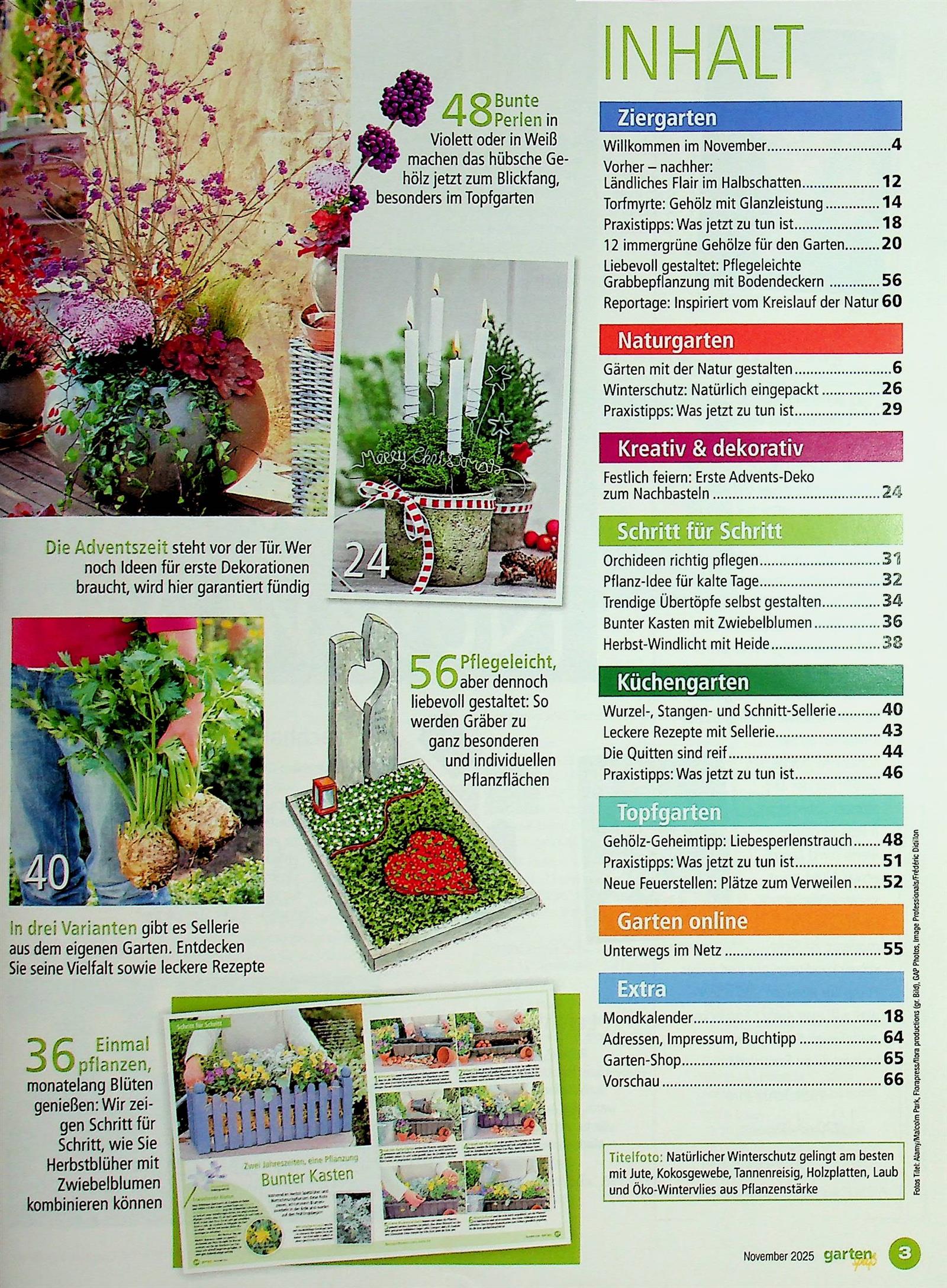 leider kann ich nicht viel zu der Zeitschrift sagen, weil ich diese verschenkt habe. Aber mein Schwager ist begeisterter Gärtner und ihm gefällt alles was damit zu hat. Ich bin sicher, er und sogar seine Frau werden die Zeitschrift mit viel Liebe zum Detail lesen.