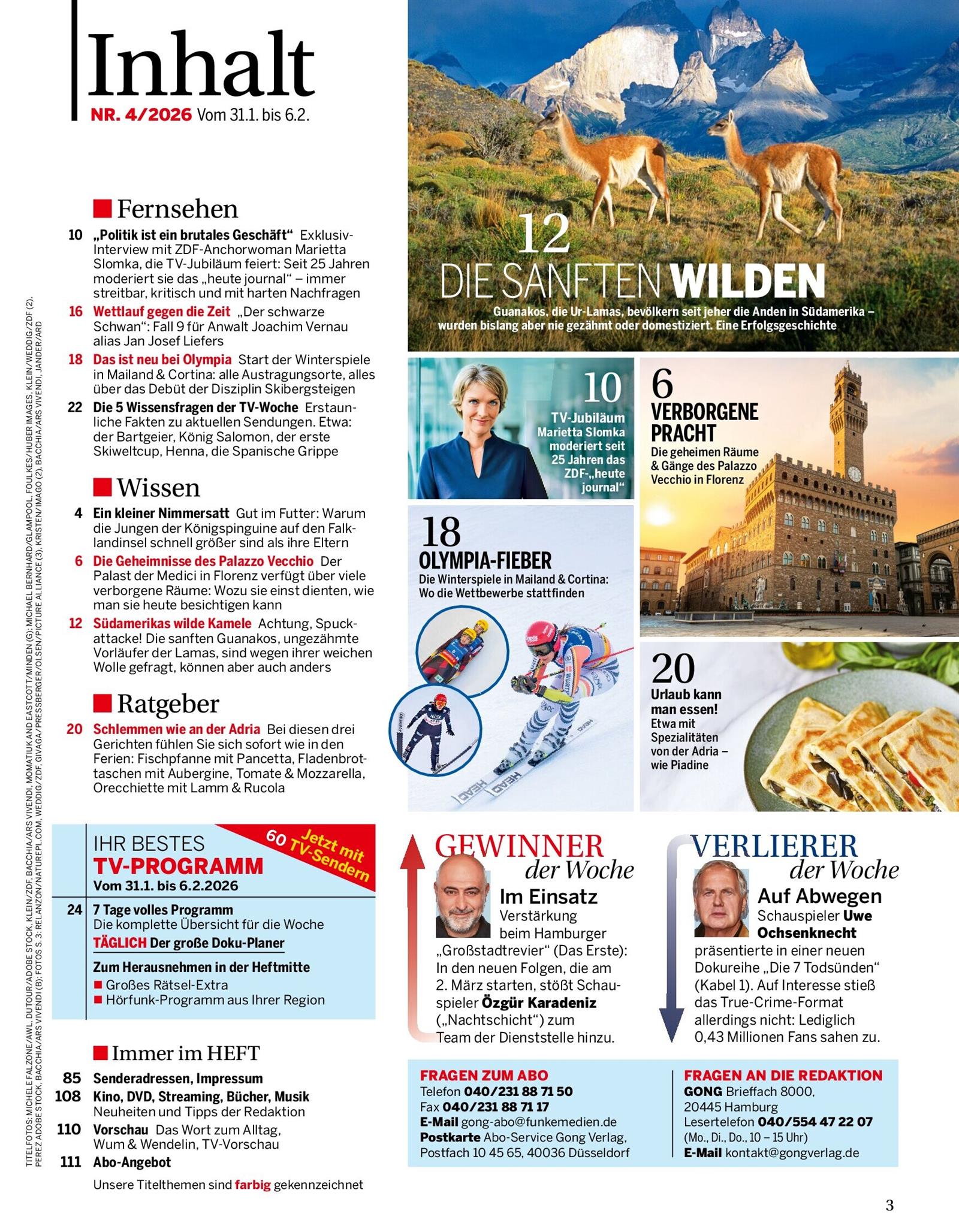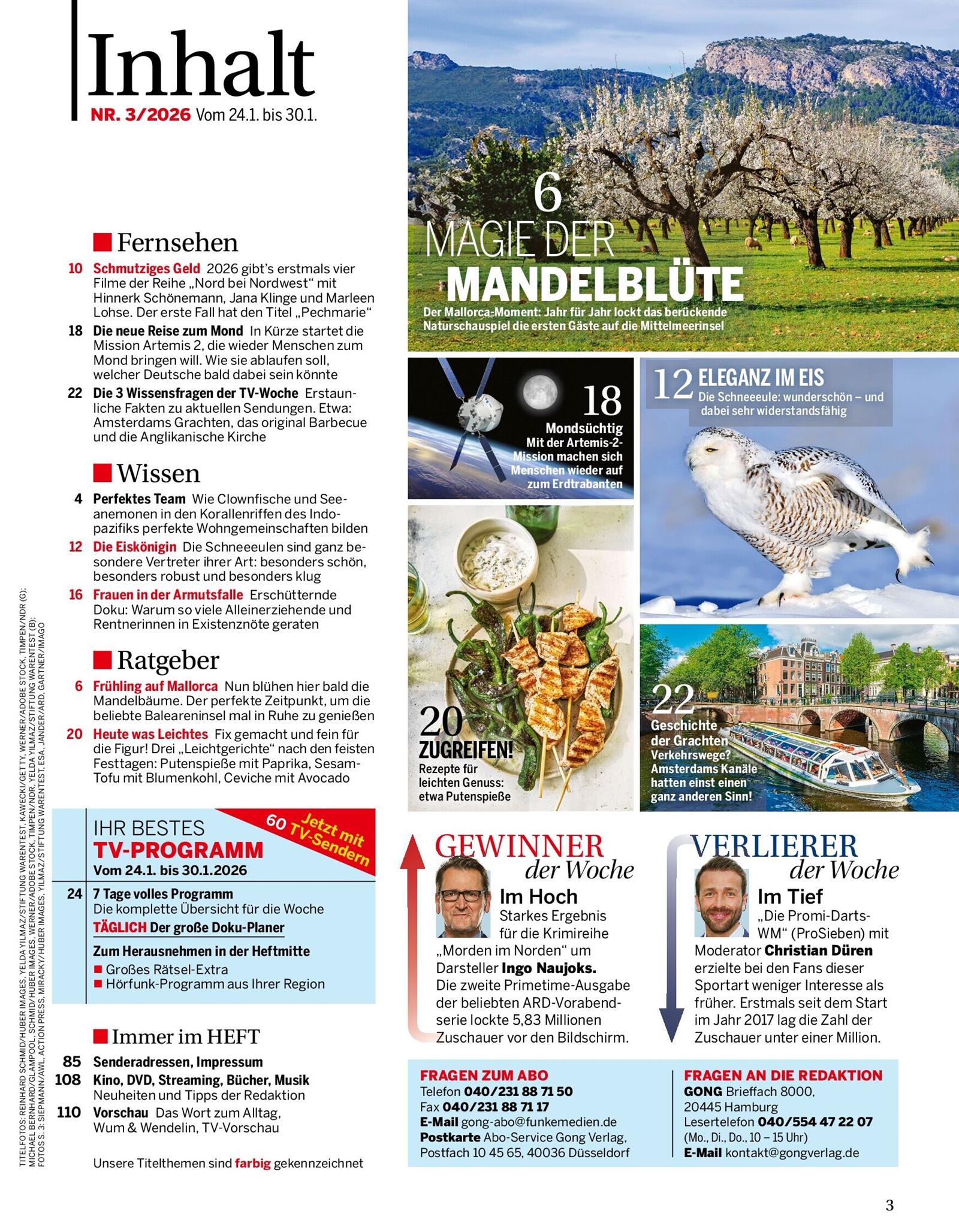 Das TV-Magazin Gong fällt in die Kategorie der wöchentlichen Zeitschriften. Wochenaktuelle Programmmagazine zählen zu den beliebtesten Formaten, das zeigt sich auch an der großen Anzahl an Alternativen. Die TV Hören + Sehen und HörZu bieten vergleichbare Konzepte mit einem hohen Anteil an exklusiven Artikeln zum TV-Programm sowie zu sonstigen gesellschaftlich interessanten Themenbereichen. Suchen Sie ein Magazin, das auch die digitalen Programme berücksichtigt, werden Sie bei Gong mit Digital Extra fündig. Es handelt sich hierbei um die normalen Gong-Ausgaben, welche um eine Digitalbeilage erweitert sind.