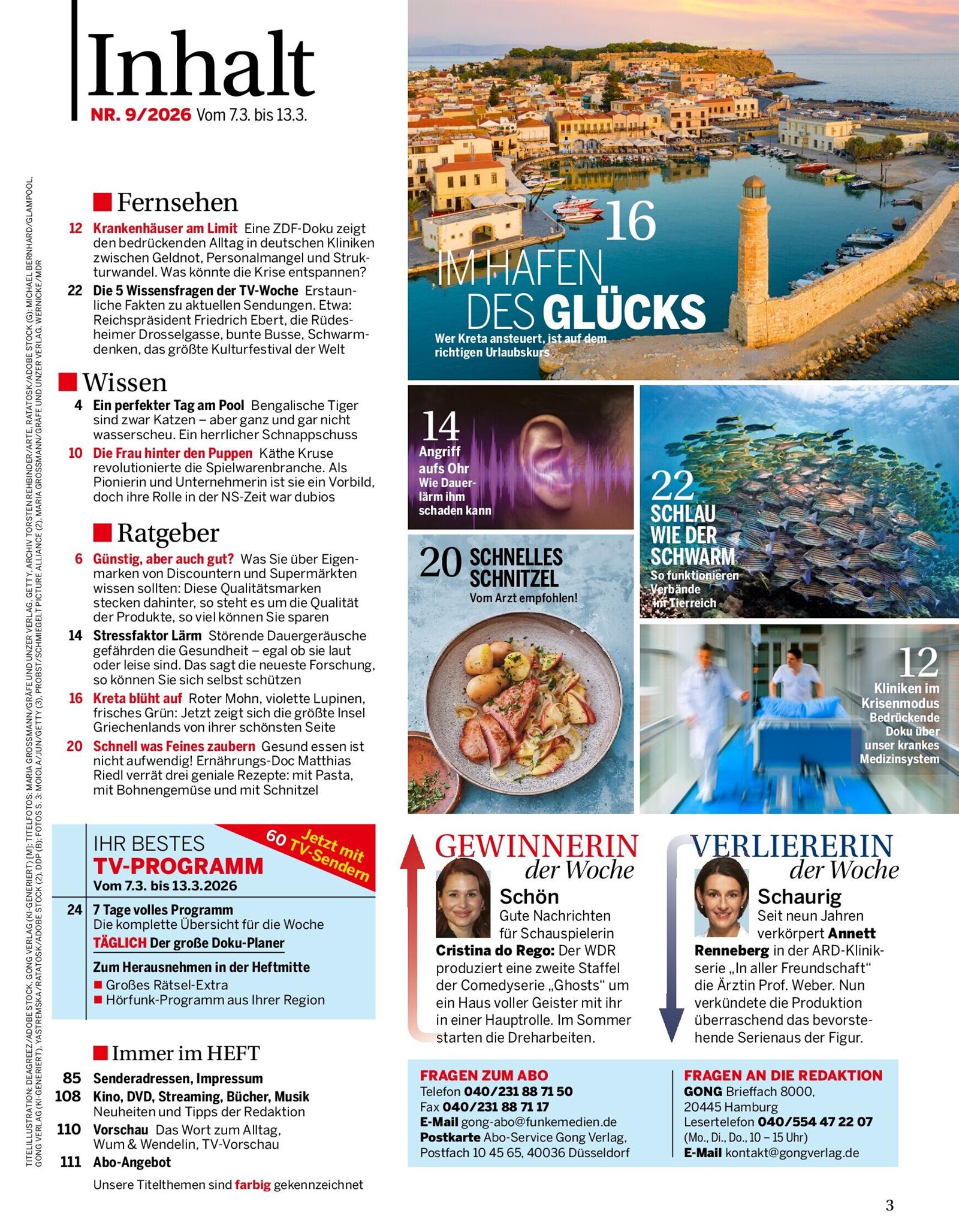 Die Rubrik listet ausgesuchte TV‑Highlights der kommenden Woche, darunter Dokumentationen, Komödien und Krimis. Beispiele sind eine ‚Terra X‘‑Doku zur Geschichte der Ballonfahrt und die Komödie ‚Fast perfekte Frauen‘ mit Silke Bodenbender. Zu jedem Titel gibt es kurze Hinweise auf Inhalt, Sendetermin und Sender, sodass Leser schnell planen können, was sie nicht verpassen sollten. Für TV‑Interessierte bietet diese Übersicht eine kompakte Programmorientierung und Empfehlungen für sehenswerte Formate.