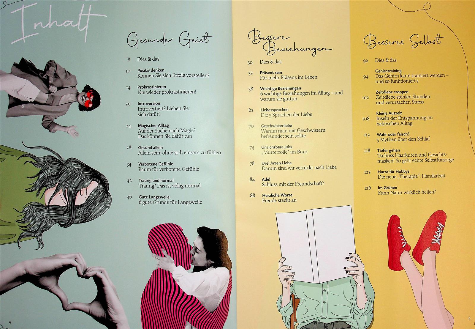 Die Zeitschrift Healthy Mind bietet eine Vielzahl von Inhalten, die sich auf das Wohlbefinden und die mentale Gesundheit konzentrieren. Leser finden Artikel über die neuesten Forschungsergebnisse zur Psychologie, Tipps zur Stressbewältigung und Strategien zur Förderung der emotionalen Intelligenz. Darüber hinaus werden auch Themen wie Achtsamkeit, Meditation und gesunde Lebensstile behandelt. Interviews mit Experten und Erfahrungsberichte von Betroffenen bieten wertvolle Einblicke und Inspiration. Die Zeitschrift ermutigt ihre Leser, ein gesundes Gleichgewicht zwischen Körper und Geist zu finden und gibt praktische Ratschläge zur Verbesserung der Lebensqualität. Mit abwechslungsreichen Inhalten ist sie eine wertvolle Ressource für alle, die ihr mentales Wohlbefinden stärken möchten.