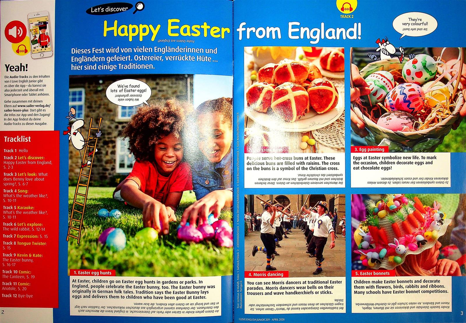 Ostereierschieben? Was ist das denn? In England gehört es für manche Kinder zum Osterfest. Was sich dahinter verbirgt und welche Ostertraditionen es in diesem Land sonst noch gibt, verrät I Love English Junior. Wir begegnen außerdem einem Wildkaninchen und dem Osterhasen, erfahren, warum Comic-Held Benny den Frühling liebt und singen ein Lied über das launische Aprilwetter. Learn English and have fun!