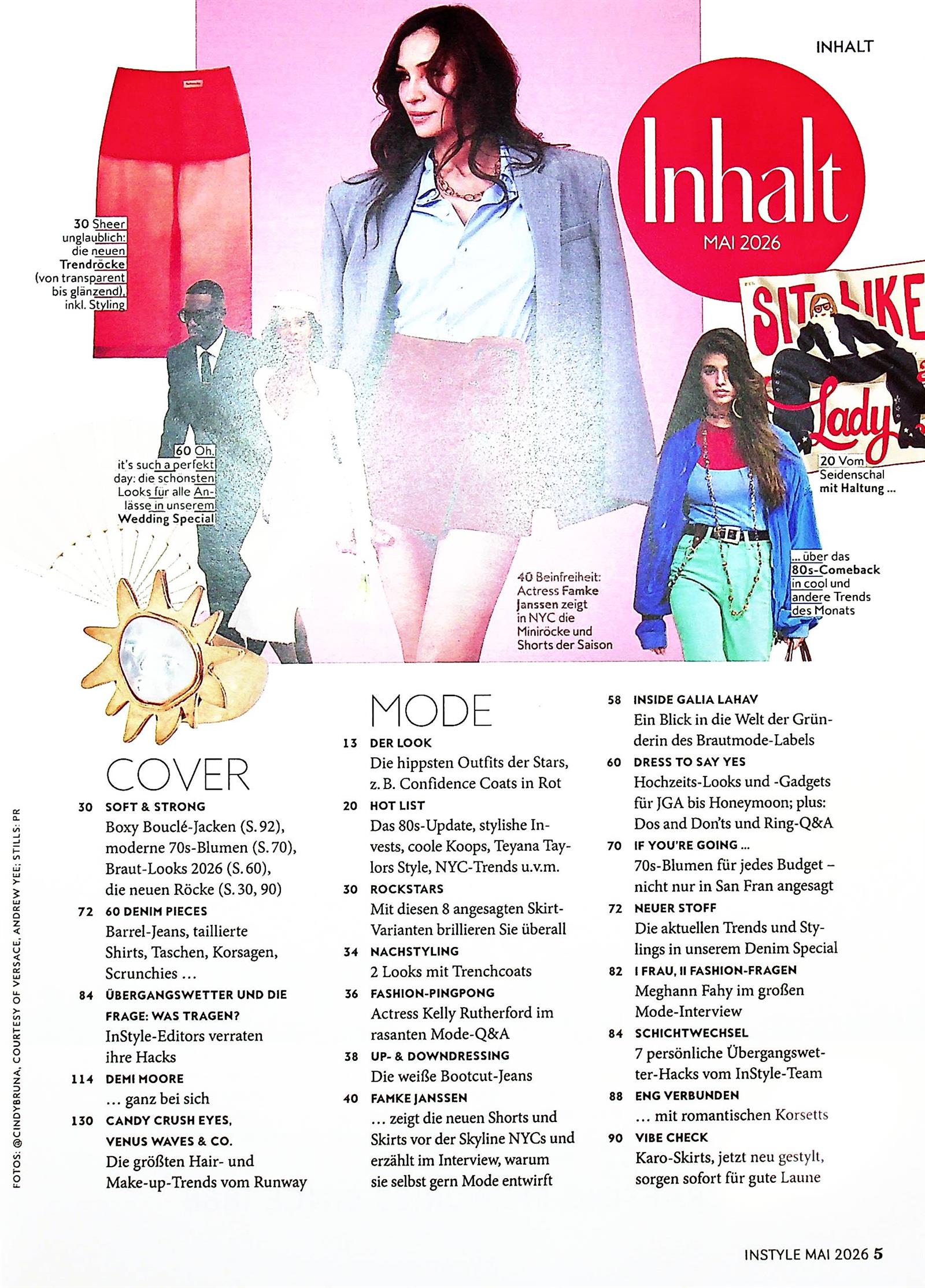 Der Beitrag zeigt ein Fashion-Shooting mit Famke Janssen in New York, das die aktuellen Mini- und Micro-Silhouetten der Saison in den Fokus stellt. Ergänzt wird die Fotostrecke durch ein ausführliches Interview, in dem Janssen über die Location, ihre Verbindung zur Mode und ihre Liebe zum individuellen Gestalten von Kleidung spricht. Sie erzählt von ihren Erfahrungen als Model und Schauspielerin, ihrem persönlichen Stil und ihren Beauty-Routinen. Außerdem erläutert sie, wie Nachhaltigkeit und Wiederverwertung in ihrem Kleiderschrank eine Rolle spielen. Für Leser*innen ist der Artikel eine Kombination aus visueller Inspiration und persönlichen Insights einer erfahrenen Stil-Ikone.