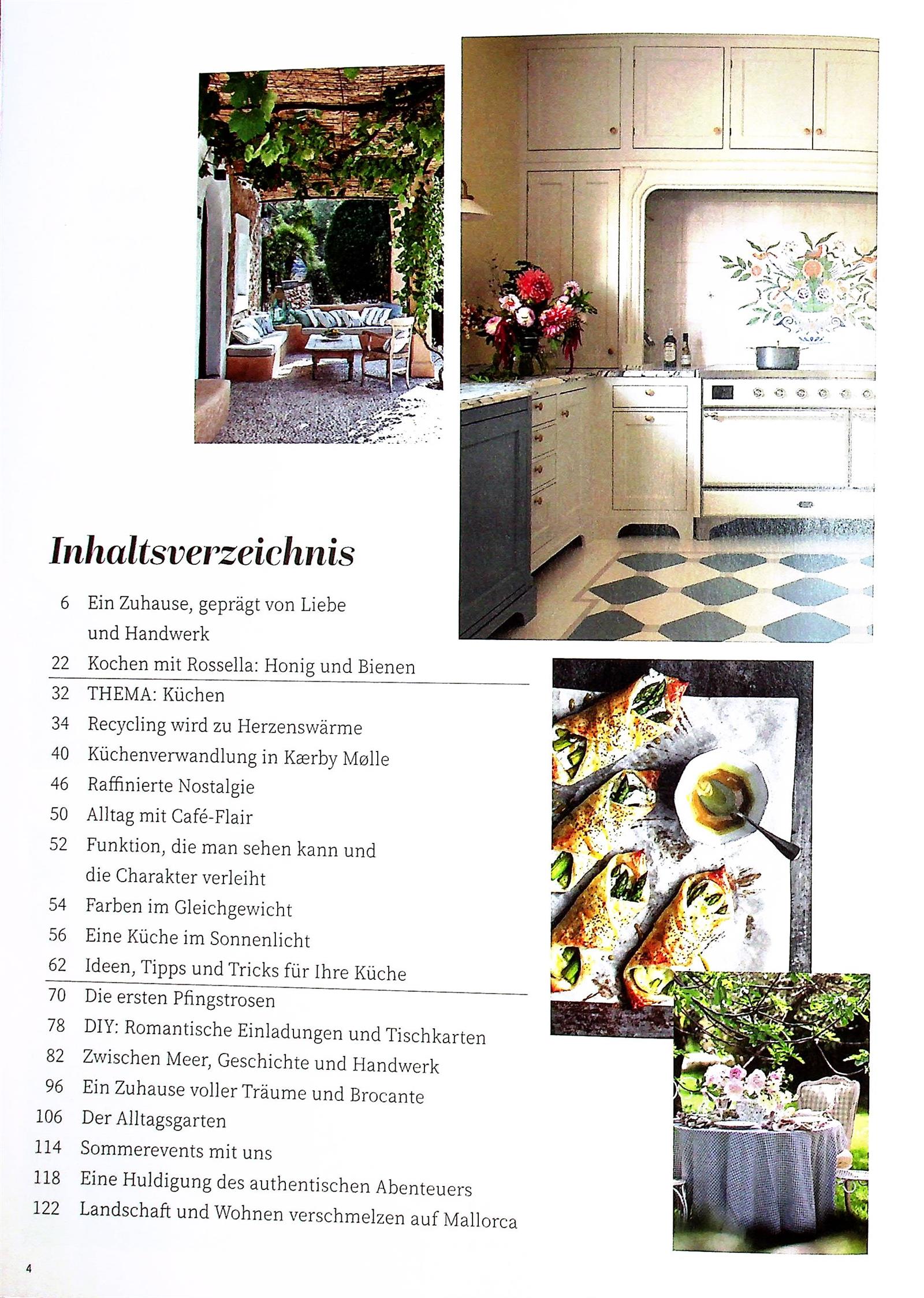 Eine wundervolle Zeitschrift voll atmosphärischer Fotos - ich kenne keine Schönere! Ein paar ausgewählte Rezepte gibt es auch, als wertvolle Ergänzung, aber nicht so viele, daß das Heft zum "Kochheft" verkommt wie bei einigen anderen. Einfach eine gelungene Mischung aus Wohnen, Garten und Genießen.