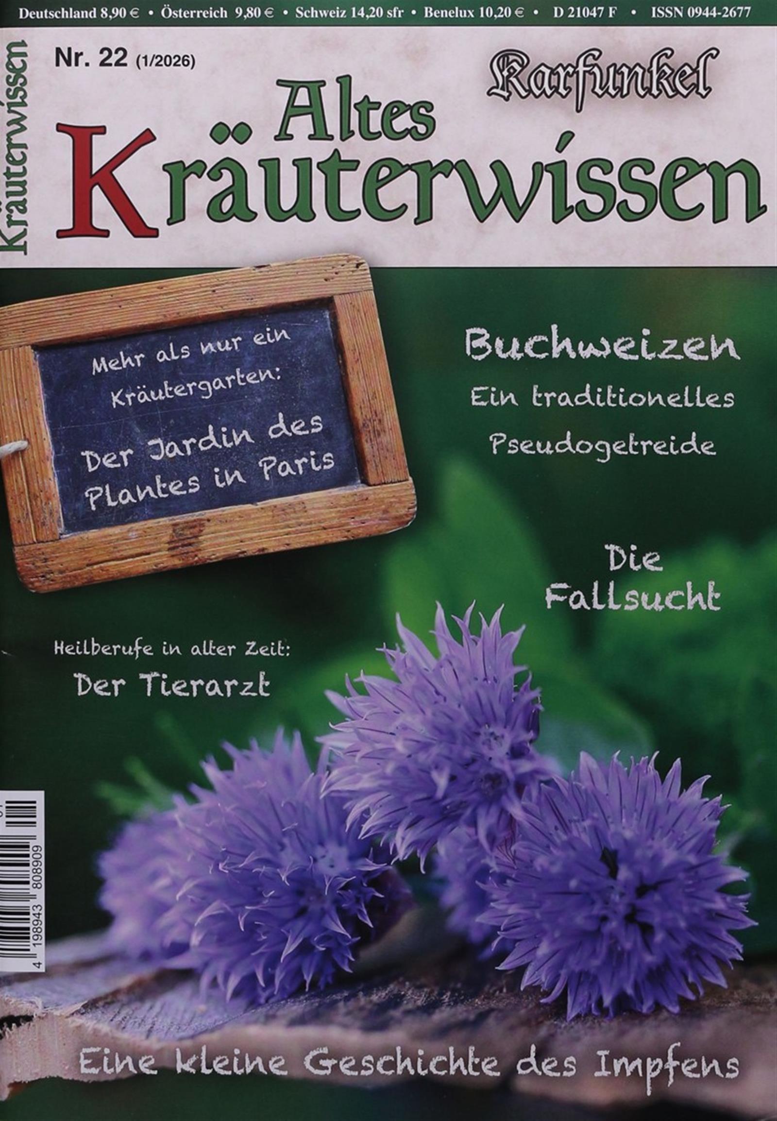 Karfunkel – Altes Kräuterwissen widmet sich der überlieferten Heilkraft der Natur. Von Omas Hausmitteln bei Insektenstichen bis hin zu überlieferten Geschichten, alten Rezepturen und pflanzlicher Heilkunde bietet jede Ausgabe eine faszinierende Reise in die Welt des traditionellen Wissens.