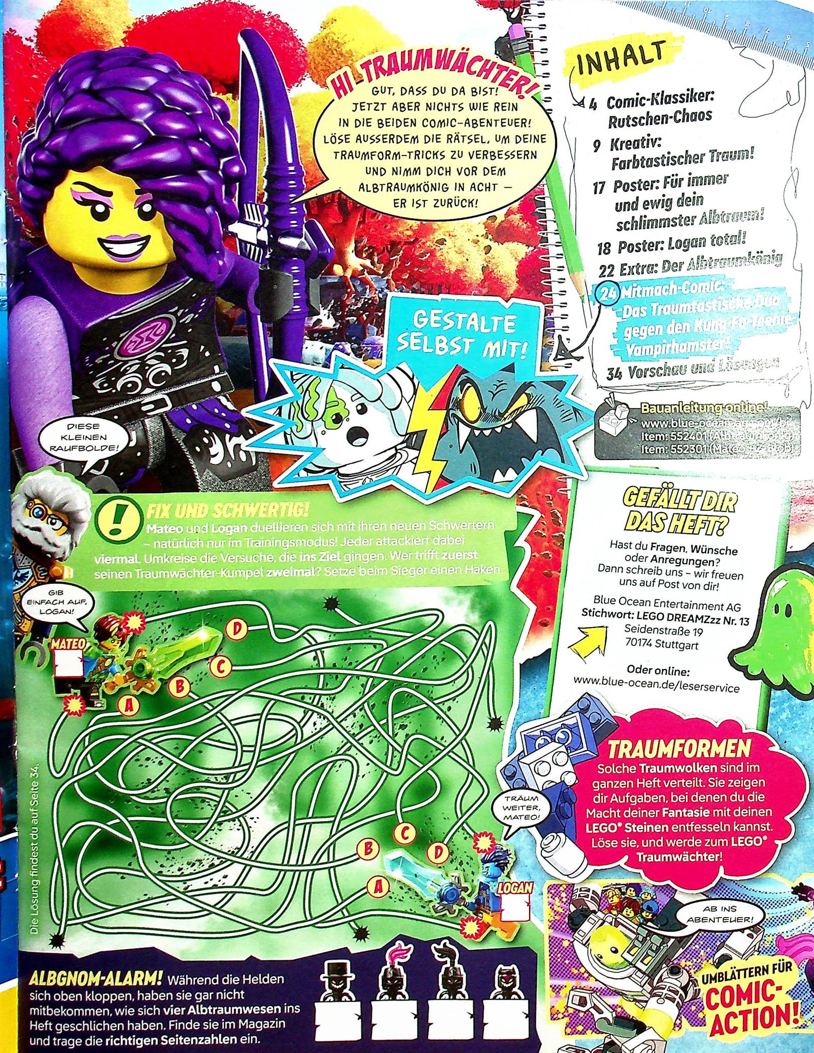 Ein actionreiches Traumabenteuer voller Rätsel und Comics. Der Albtraumkönig ist zurück und stärker denn je. Labyrinthe, Suchaufgaben, Mitmach-Comics und Traumformen fordern Fantasie und Köpfchen. Dazu Poster und Extras, die zum Blättern, Miträtseln und Eintauchen in eine schaurig-bunte Traumwelt einladen.