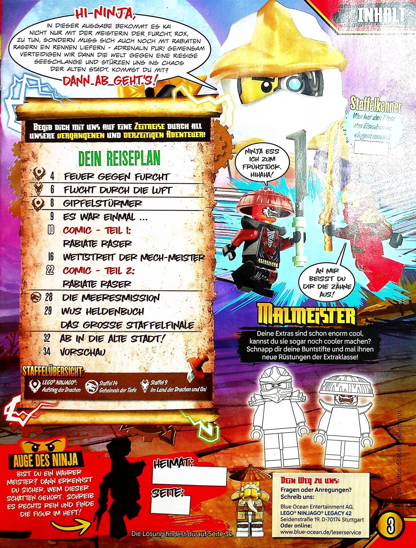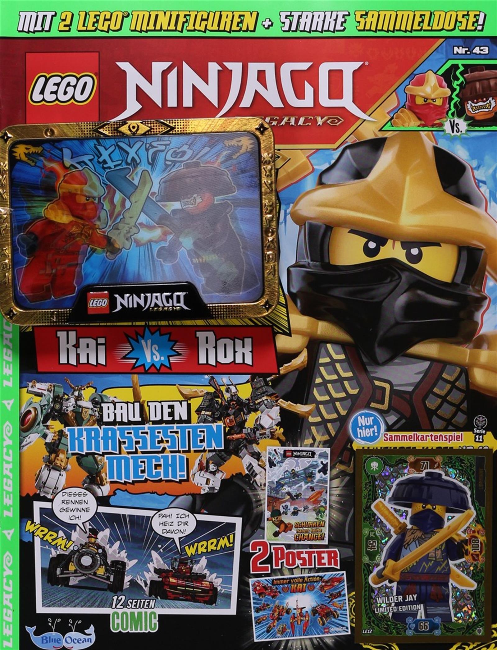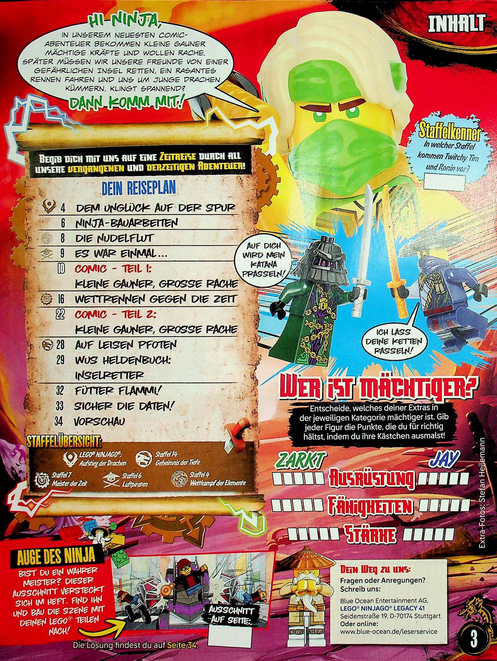 Das LEGO Ninjago Legacy Magazin enthält fesselnde Hintergrundgeschichten zur Entstehung der Ninja Welt und ihren Hauptfiguren sowie passende Poster zum Heftthema. Mit den Steckbriefen beliebter Ninja-Helden sowie Bösewichte und gleich zwei original LEGO-Legacy-Minifiguren hält das Magazin echte Highlights bereit und ist ein Muss für jeden LEGO-Ninjago-Fan. Actionreiche Comics zeigen, wie beispielsweise Lloyd sein Talent in kniffligen Prüfungen gegen die anderen Ninja beweisen muss und wie Schurke Garmadon ihn dabei in brenzlige Situationen bringt.