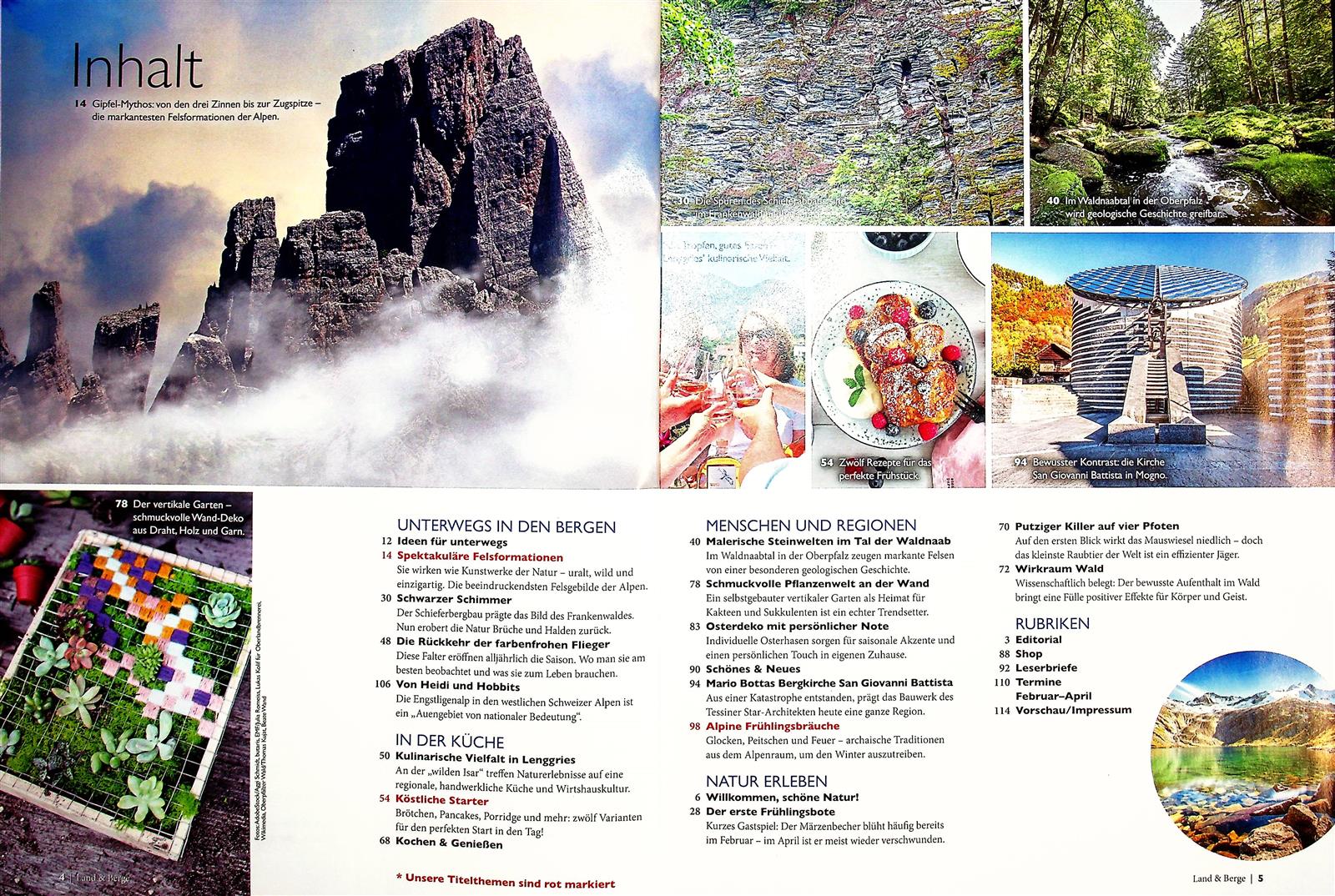 Kennzeichnend für die Land & Berge ist die Kombination aus ländlichen Themen mit der Welt des Wanderns und Bergsteigens.