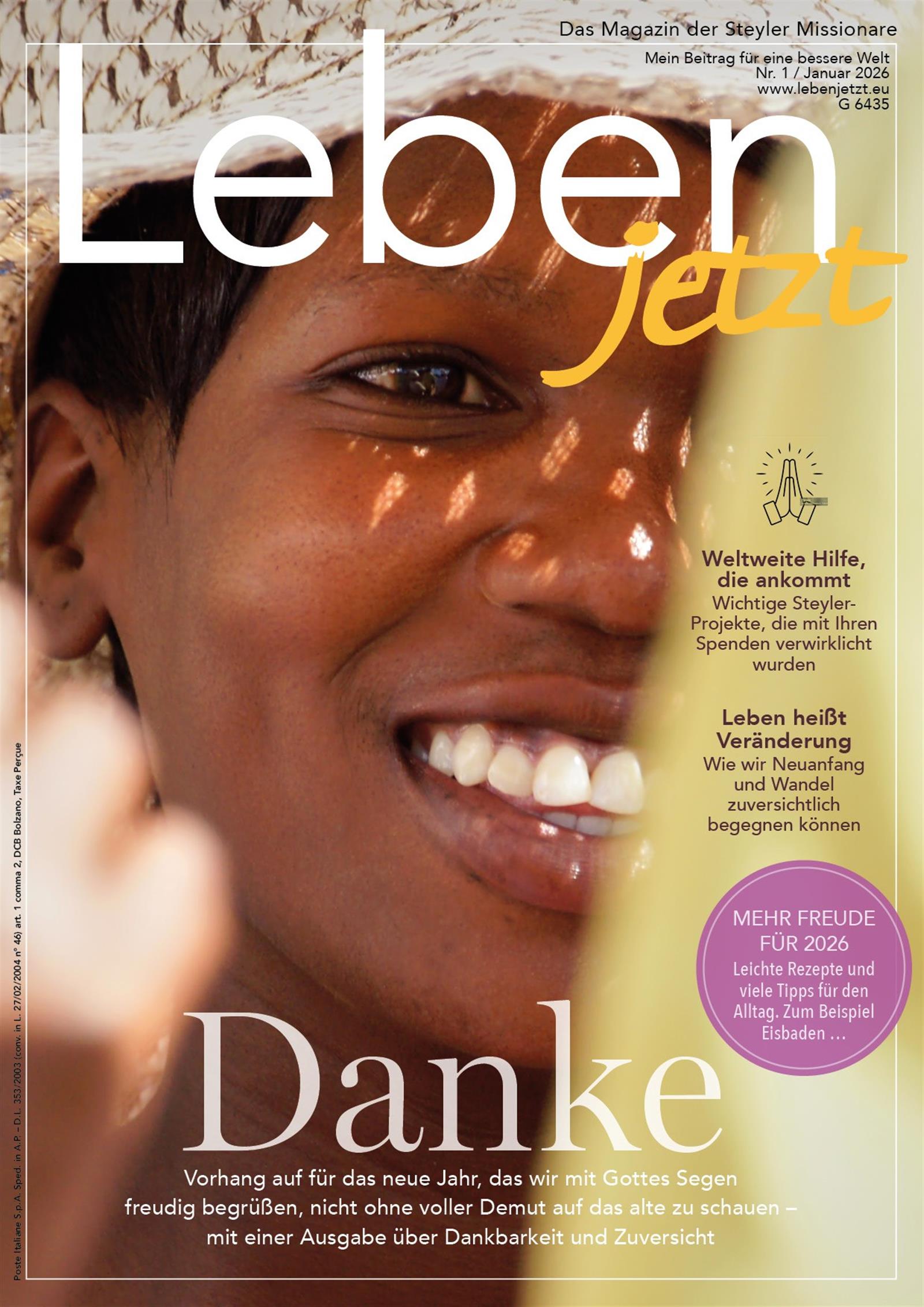 Leben jetzt, das Magazin der Steyler Missionare, möchte Sie inspirieren, spirituelle Erfahrungen und christliche Werte mit Ihnen teilen. Wir möchten Sie in Ihrem persönlichen Einsatz für eine bessere Welt unterstützen und mit in die Welt der Steyler nehmen. Freuen Sie sich auf ein spannendes Magazin mit wertvollen Beiträgen!