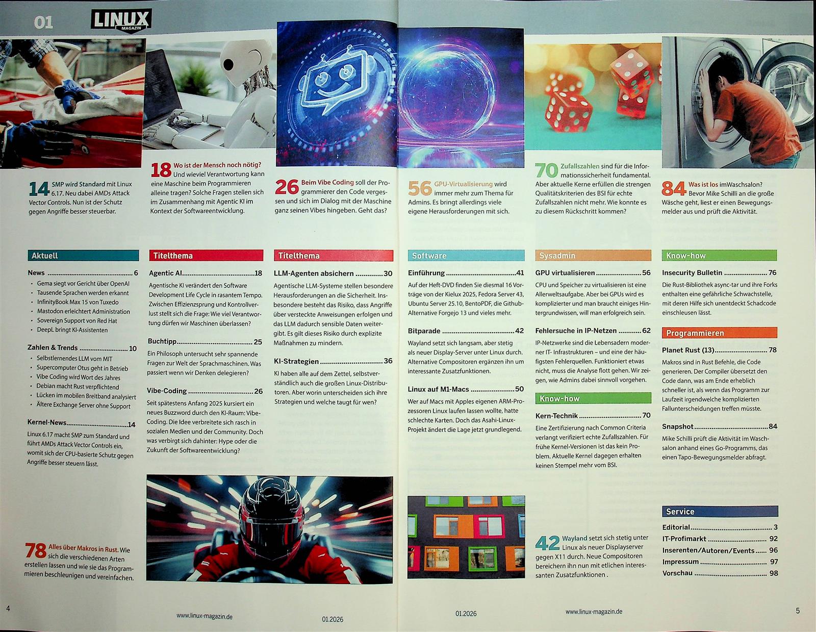 Aktuelle Entwicklungen zu Linux – willkommen beim Linux Magazin. Zu den festen Rubriken der Zeitschrift gehören neben News aus der Linux-Welt auch aktuelle Trends und Zahlen, eine Kolumne, Kernel-News und Kern-Technik sowie eine Reihe zu C++. Linux in all seinen Facetten ist klarer Schwerpunkt seiner Inhalte, stammen aus den Bereichen Internet-Anwendungen, Programmierung oder Sicherheit. Das Magazin stellt aktuelle Release zu Linux basierten Betriebssystemen vor, widmet sich den Distributionen, beschäftigt sich mit Fragen der Interoperabilität mit anderen Betriebssystemen, nimmt sich der Frage von Sicherheitslücken ebenso an wie den Rahmenbedingungen für einen sicheren und effektiven Einsatz von Linux-Systemen. Erweitert um Inhalte zu Soft- und Hardware, Netzwerk, Administration, der Entwicklung und Securityaspekten trägt die Redaktion neben vielen weiteren Themen die entscheidenden Bausteine rund um den Linux-Einsatz im professionellen Rahmen zusammen, klärt auf, beleuchtet Hintergründe, gibt Tipps und Hinweise zu Anwendung und Einsatz bis hin zu Schulungsangeboten für IT-Professionals. Nur eine Randnotiz und doch fester wie beliebter Bestandteil jeder Ausgabe des Linux Magazins ist die Kolumne „Aus dem Alltag eines Sysadmin“ von Charly Kühnast.