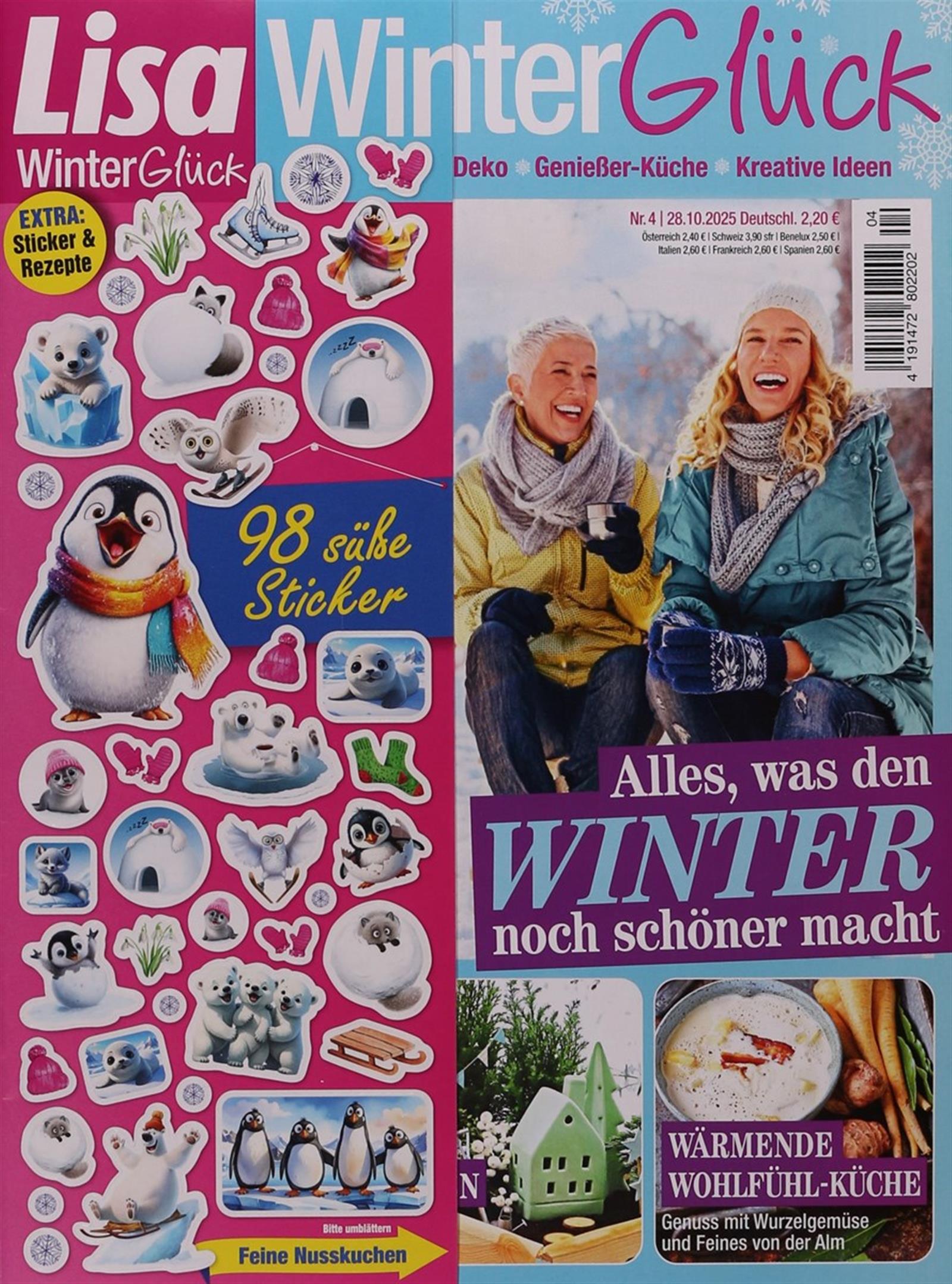 Lisa Jahreszeiten ist eine beliebte Publikation, die sich auf verschiedene Themen rund um Leben, Genuss und Freizeit konzentriert. Mit einer abwechslungsreichen Mischung aus interessanten Artikeln, Rezepten, DIY-Ideen und Tipps für die Gestaltung aller vier Jahreszeiten spricht sie eine breite Leserschaft an. Die Leserinnen und Leser finden Inspiration für saisonale Feste, kulinarische Highlights und kreative Projekte, die das Leben bereichern. Zudem bietet die Zeitschrift Einblicke in aktuelle Trends und Empfehlungen für Reisen und Freizeitaktivitäten. Lisa Jahreszeiten fördert ein bewusstes und genussvolles Leben und ist somit eine wertvolle Begleitung durch das Jahr.