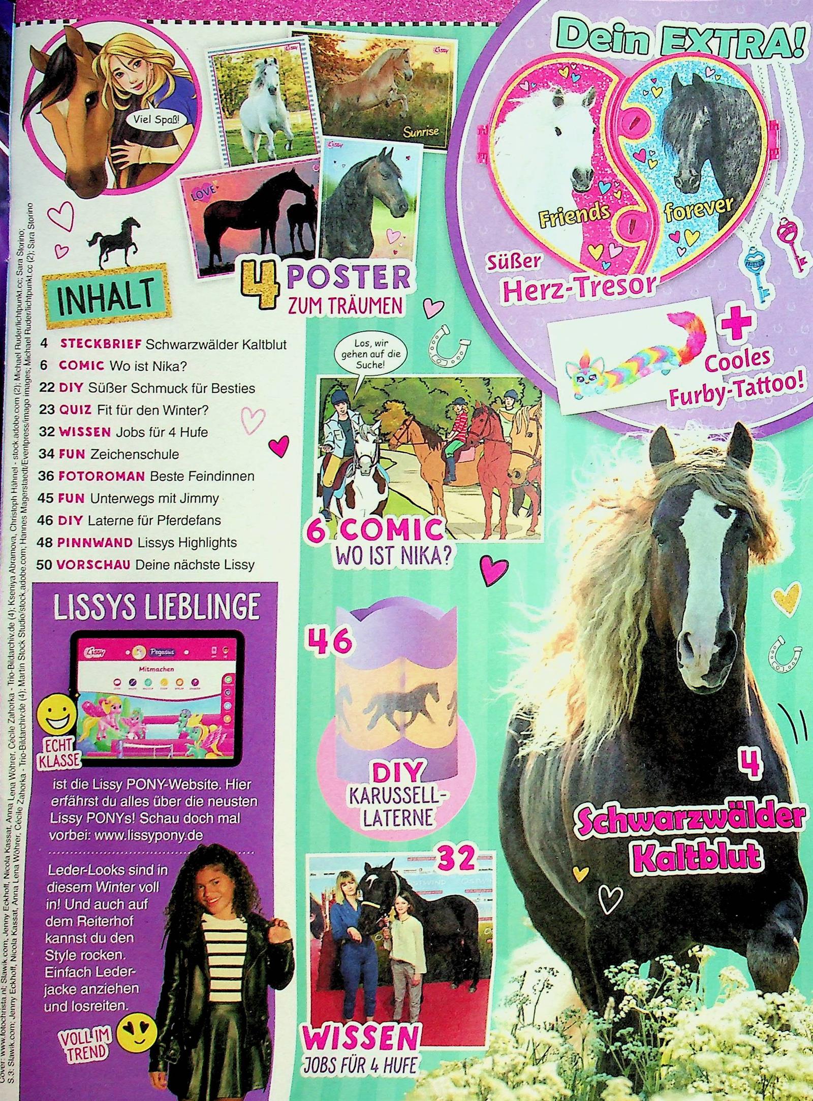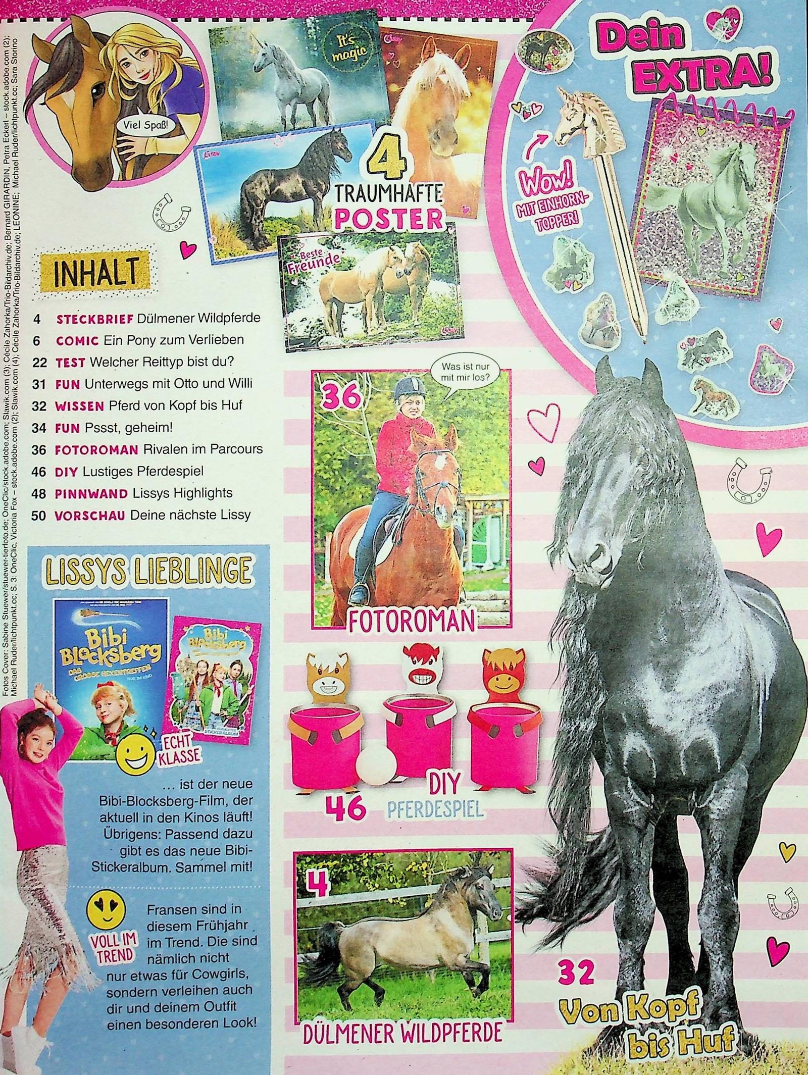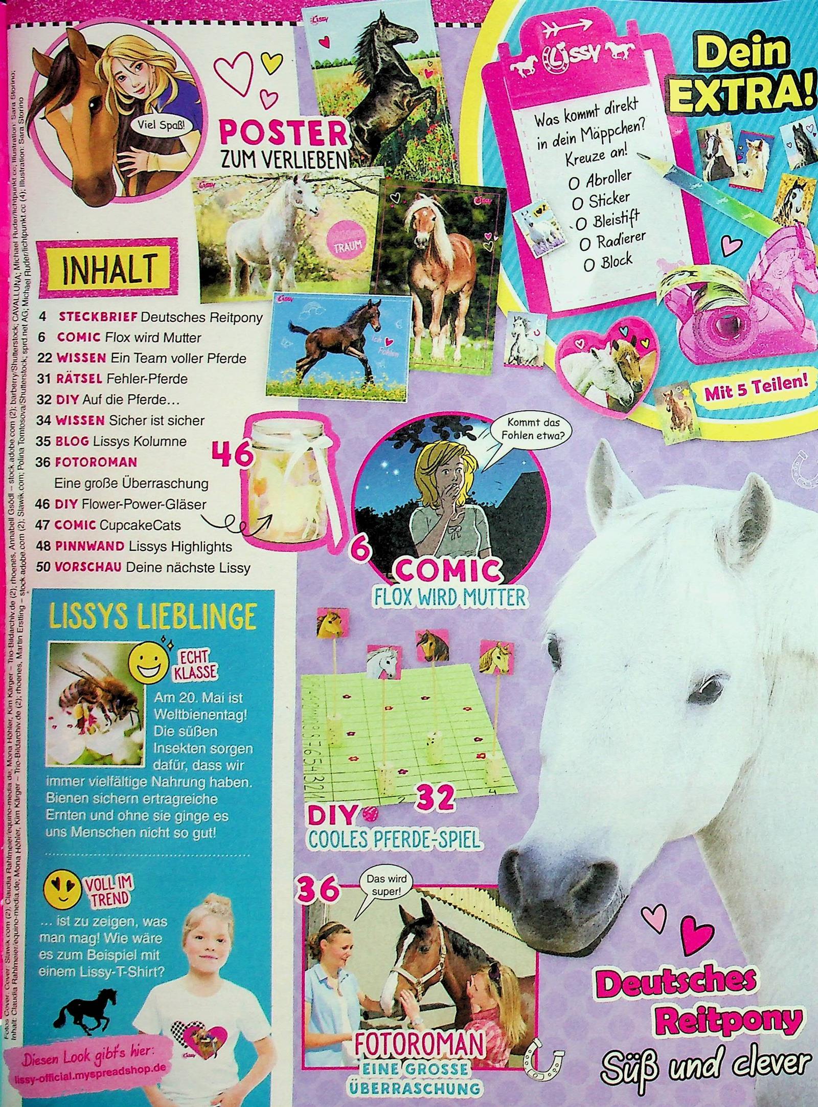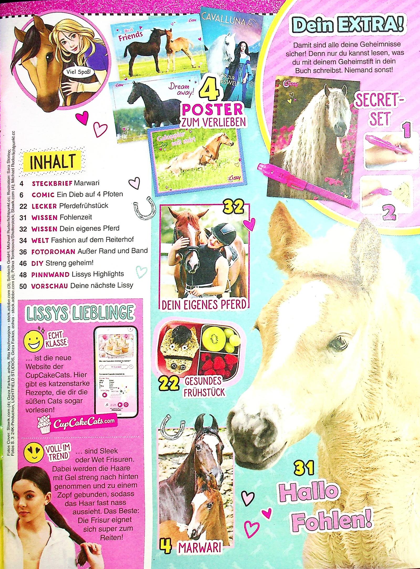 Alles rund ums Pferd! Diese Ausgabe nimmt alle Pferdefans mit auf den Reiterhof und erklärt spannende Fakten rund um die Fohlen-Zeit. Als cooles Extra liegt ein Secret-Set dabei: ein Lissy-Notizbuch mit Zauberstift, mit dem geheime Zeichnungen sichtbar werden. Außerdem gibt es einen Steckbrief und einen Mega-Gewinn zu gewinnen. Perfekt für alle, die Pferde lieben!