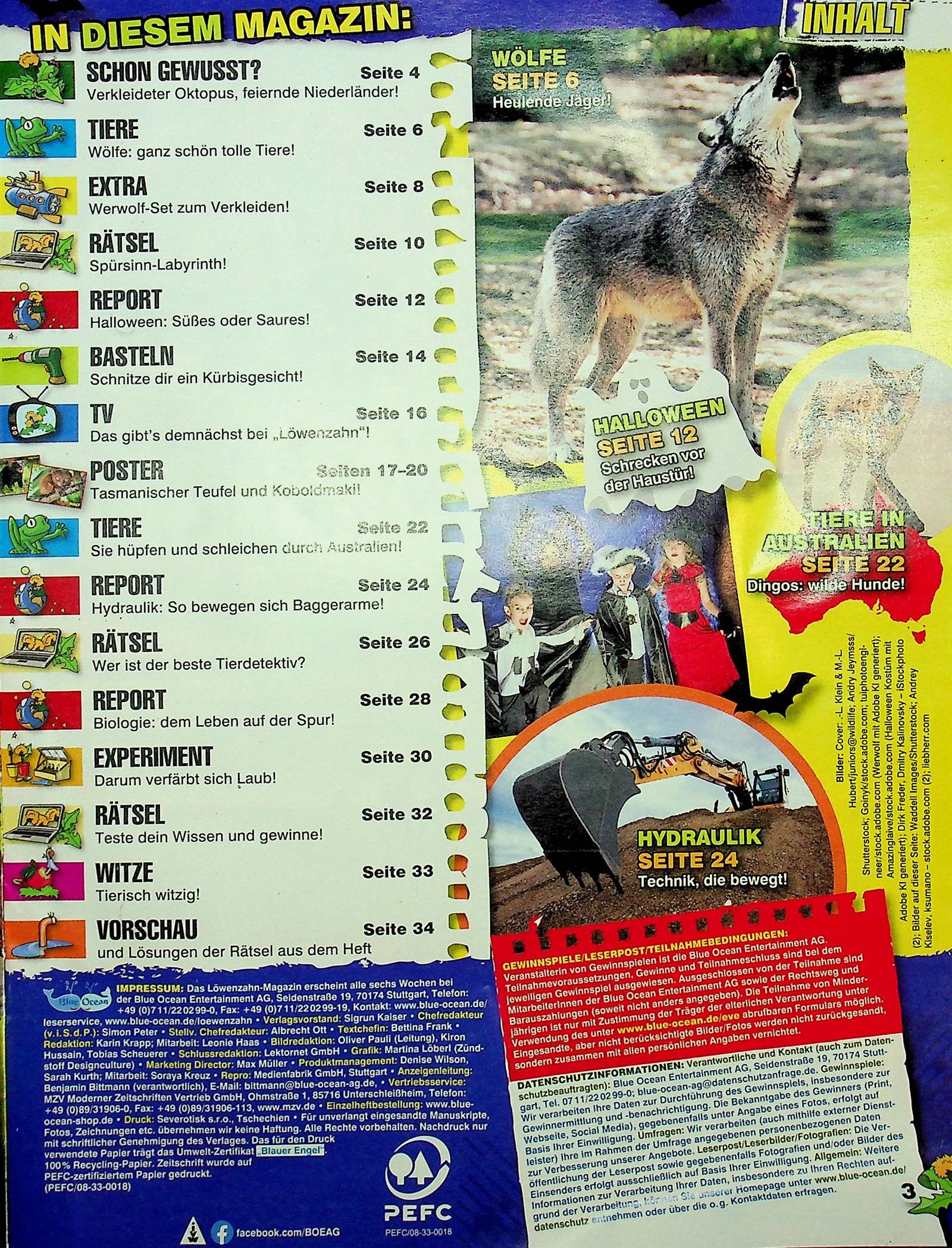 Wie auch in der TV–Sendung werden bei Löwenzahn Wissenthemen präsentiert. Die Zeitschrift umfasst 36 Seiten und widmet sich unter anderem dem Leben der Tiere, Umweltthemen oder auch technischen Fragestellungen und vielem mehr. Mit dabei sind in jeder Ausgabe der beliebte Fritz Fuchs und dessen Hund „Keks“. Neben den reinen Artikeln werden auch Experimente zum Selbermachen und Extras präsentiert.