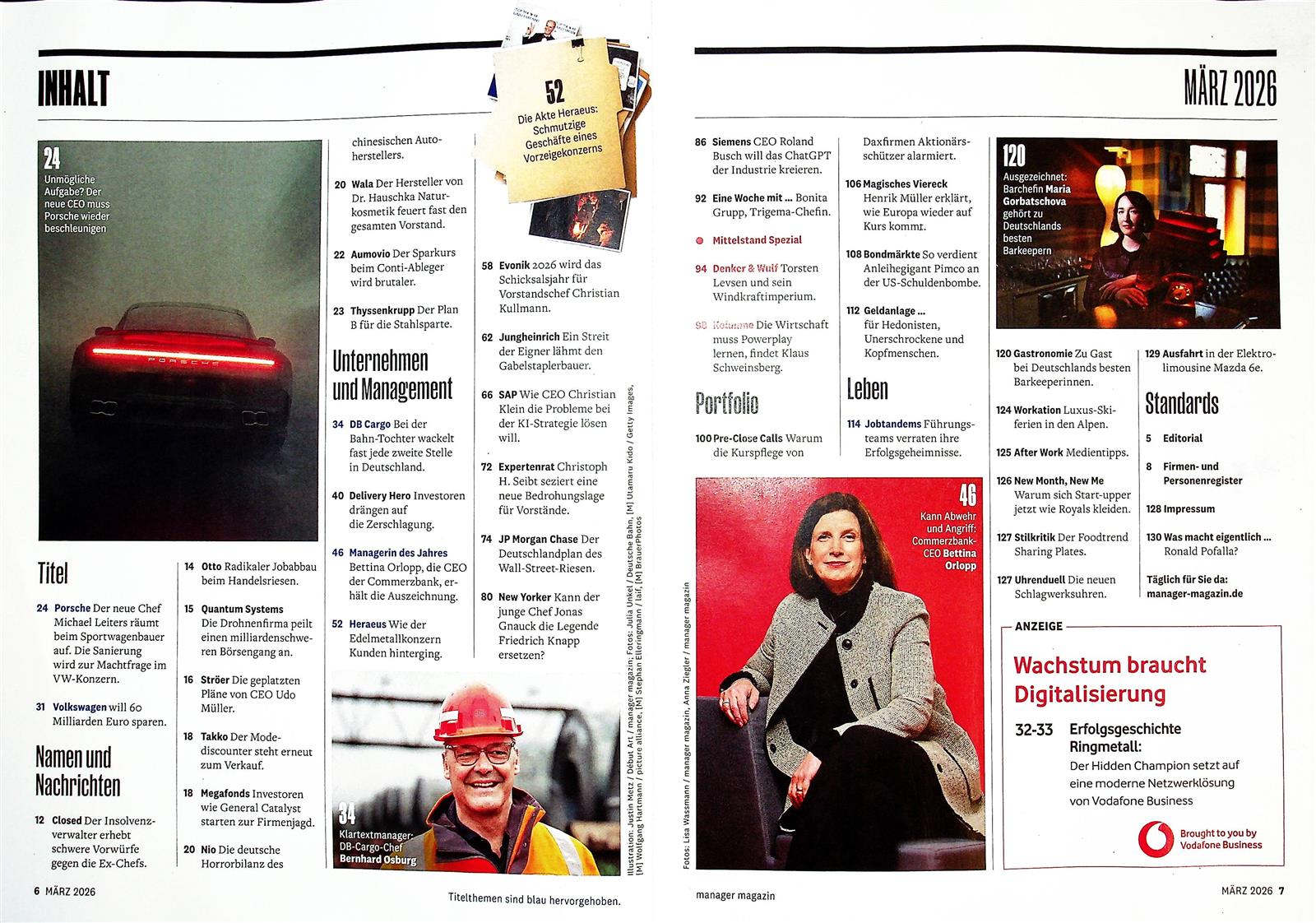 Das manager magazin führt den Untertitel „Wirtschaft aus erster Hand“ und gilt als führendes Medium für Entscheider*innen und Führungskräfte der deutschen Ökonomie. Die renommierte Publikation hat als Schwerpunkt die Themen Unternehmensberichterstattung und Betriebswirtschaft.