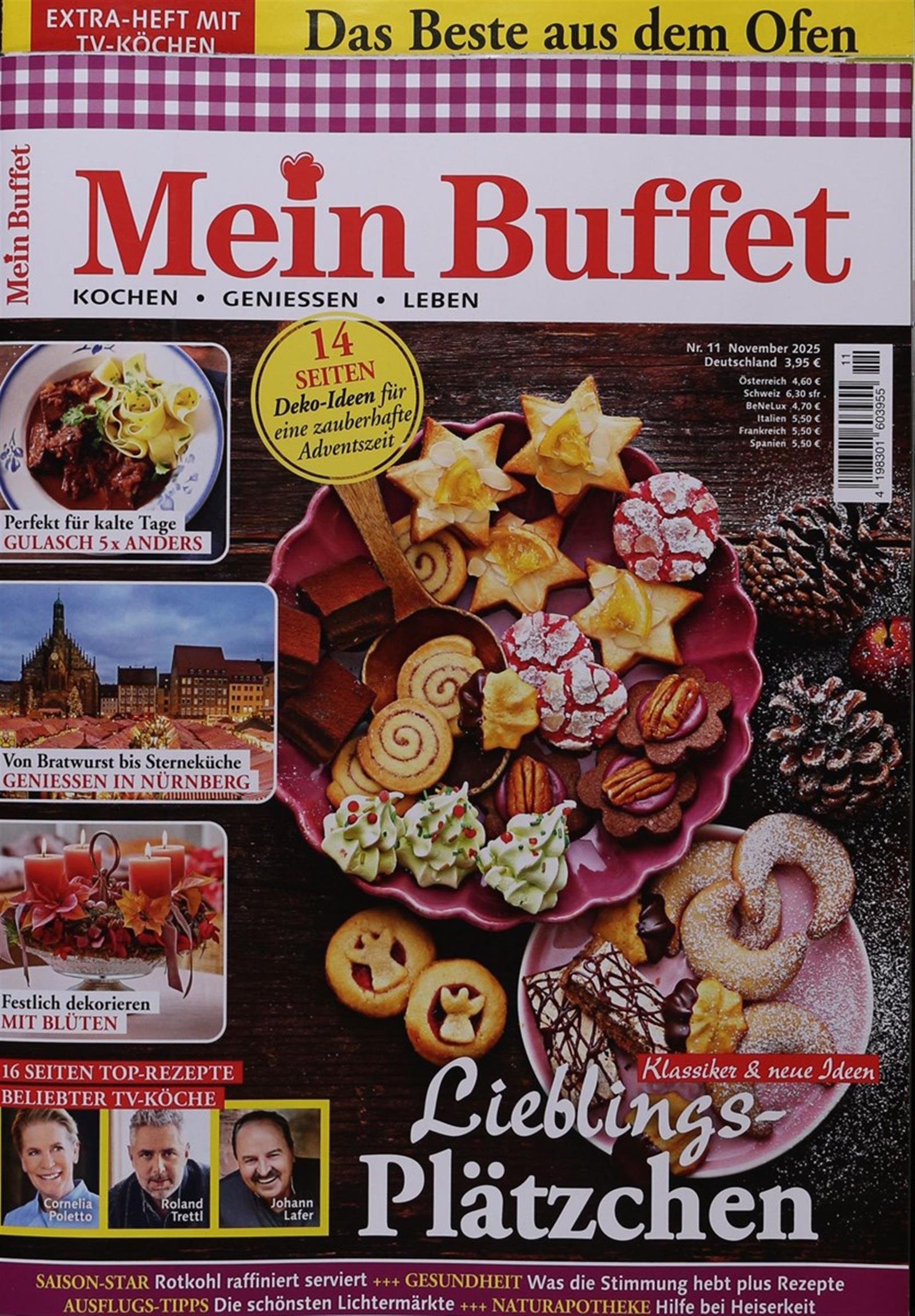 Kochen, Unterhaltung, Experteninterviews, Verbraucherinformationen und dazu eine Prise Recht und Gesundheit. Mein Buffet ist mehr als eine normale Kochzeitschrift und bietet doch kreative Kochideen, sozusagen von TV-Köchen erprobt. Hier findet jeder sein Lieblingsrezept und seinen Lieblingskoch.