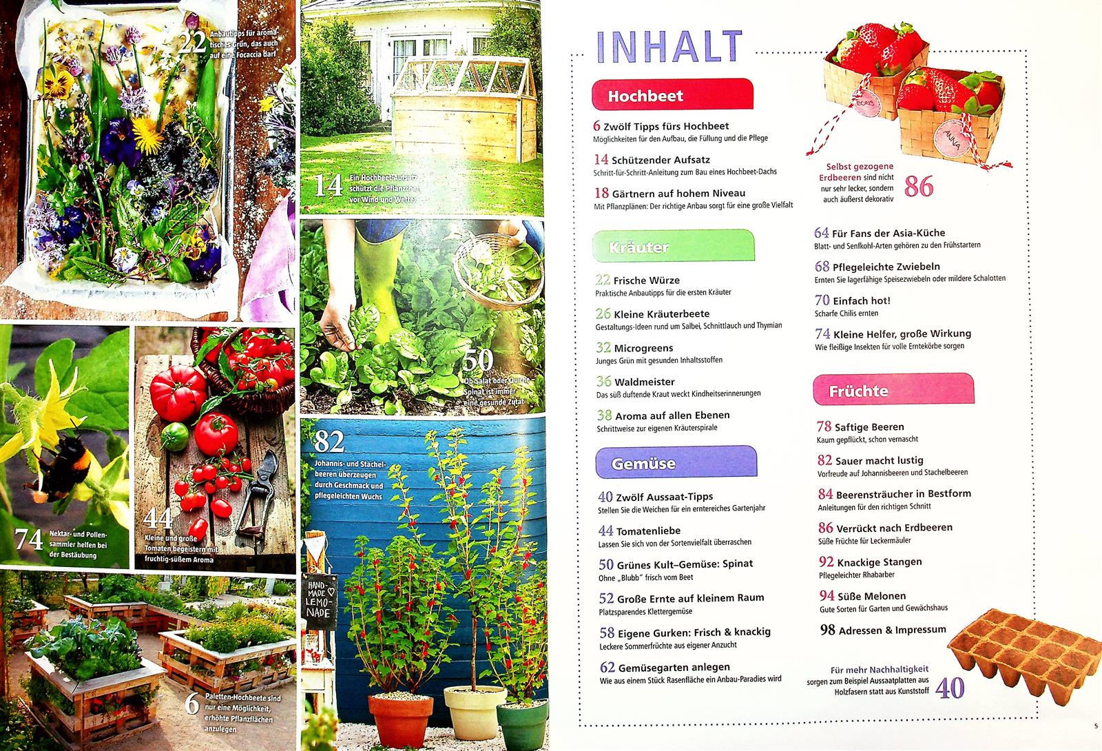 Tolles Heft für alle, welche Inspirationen für die diversen Gartenbereiche möchten! Es sind viele, oft auch einfach umsetzbare Ideen zum jeweiligen Hauptthema zu finden. Vieles wird allerdings eher oberflächlich aufgezeigt oder beispielhaft vorgestellt, wer weiterführende und "tiefgründigere" Informationen möchte, muss sich andere Informationsquellen suchen.