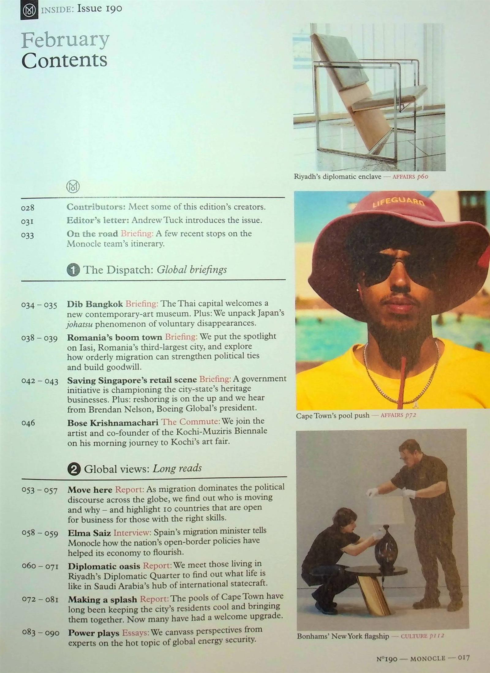 Englisch gesagt: Focusing on global affairs, business, culture and design, Monocle's mission is to keep an eye on the world.