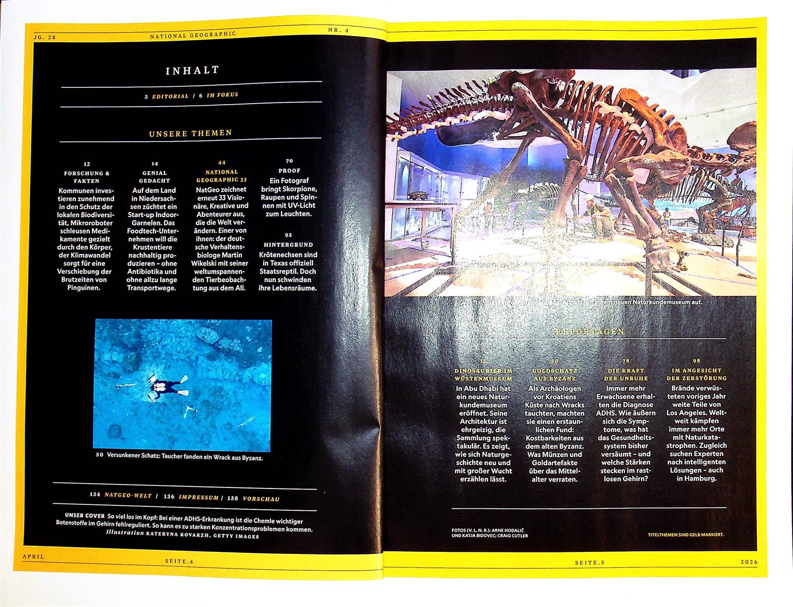 National Geographic widmet sich umfassend den Themen Geographie, Naturwissenschaften und Kultur. In jedem Heft finden Leser fesselnde Reportagen zu Archäologie, Geschichte und Ethnologie sowie spannende Artikel über die Artenvielfalt unserer Erde. Ergänzt durch spektakuläre Fotostrecken und Reiseempfehlungen, öffnet das Magazin den Blick auf neue Perspektiven und bringt die Wunder der Erde näher. Hinzu kommen informative Poster und Specials, die das Leseerlebnis abrunden.