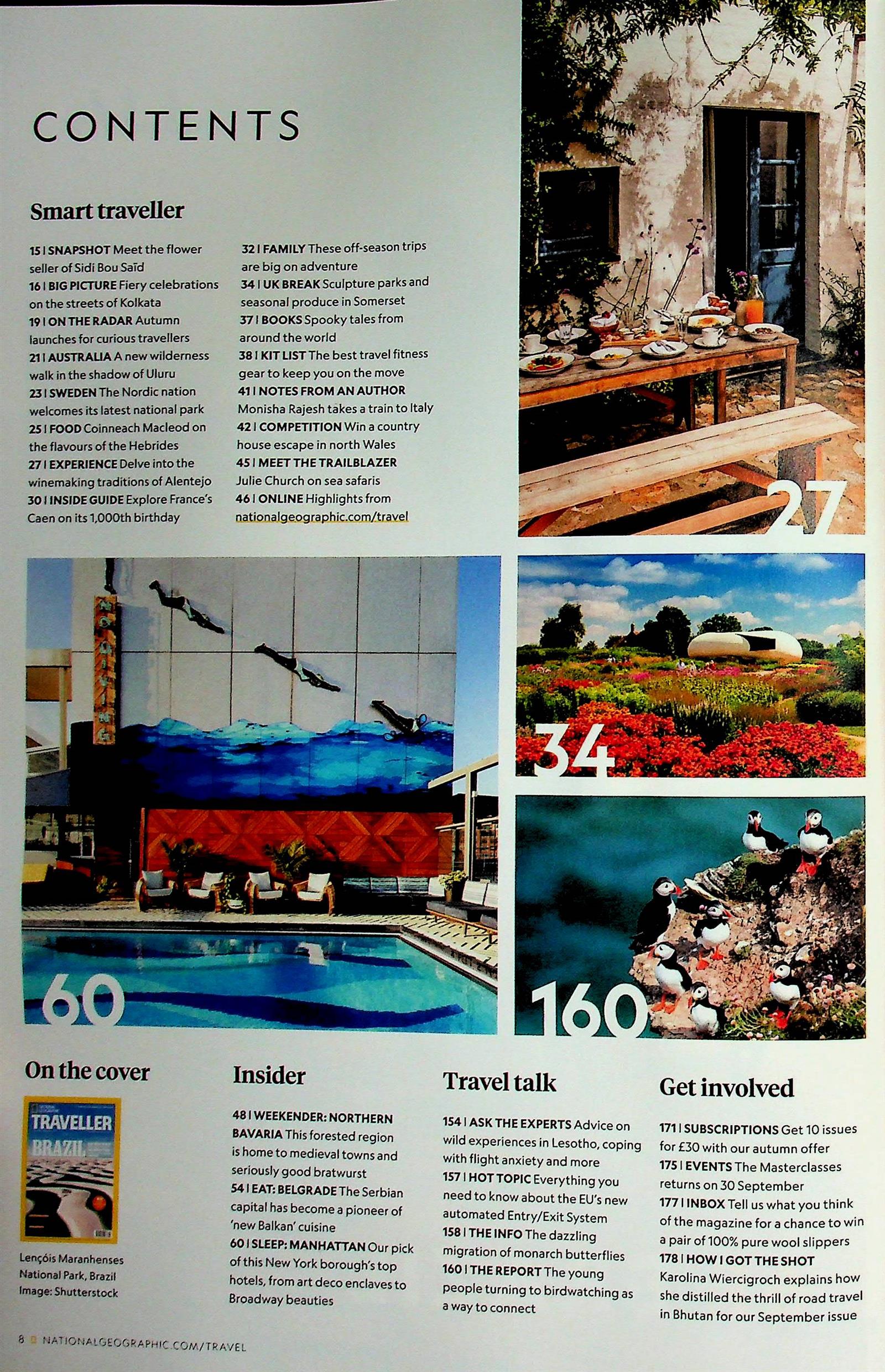 Daneben finden sich in National Geographic Traveller UK viele hilfreiche Informationen. Ein großer Serviceteil mit allen relevanten und notwendigen Hinweisen rund um die Reiseziele darf in keiner Ausgabe des Magazins fehlen.
