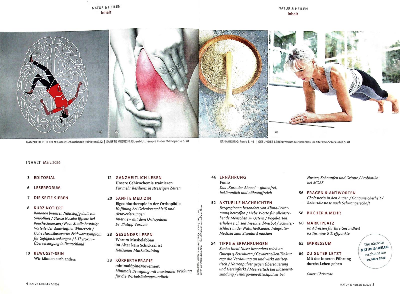 Ich lese "Natur&Heilen" seit ca. 20 Jahren immer wieder mit grosser Beheisterung :-) . Ich staune immer wieder über die diffferenzierten und sorgfälltigen Artikel; mehr als einmal kam etwas, was gerade zu meiner Situation passte und mich weiterbrachte :-). Ich kenne keine weitere Quelle,die so umfangreich so viele unterschiedliche Themen angeht. Herzlichen Dank für diese sorgfältige Arbeit.