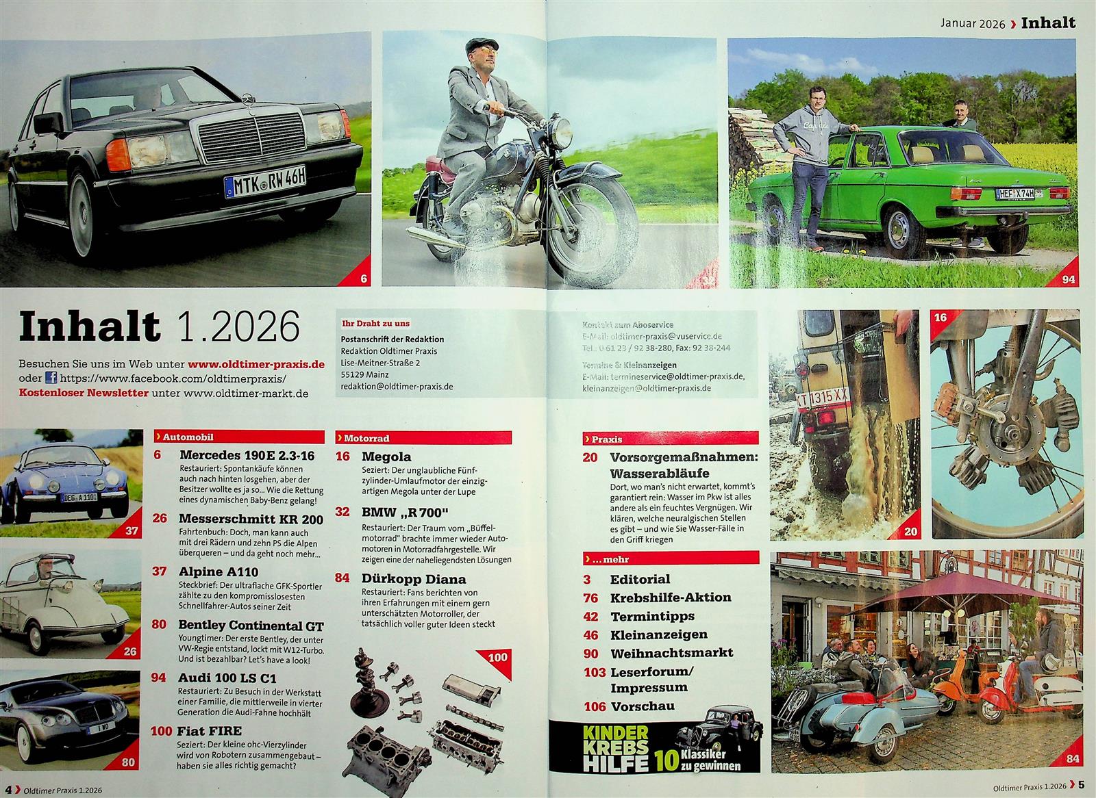 Die Besonderheit an der Oldtimer Praxis ist sicherlich der hohe Praxisbezug. So handelt es sich gleichzeitig um eine Zeitschrift, als auch um eine gelungene Sammlung an Reparatur– und Pflegetipps.