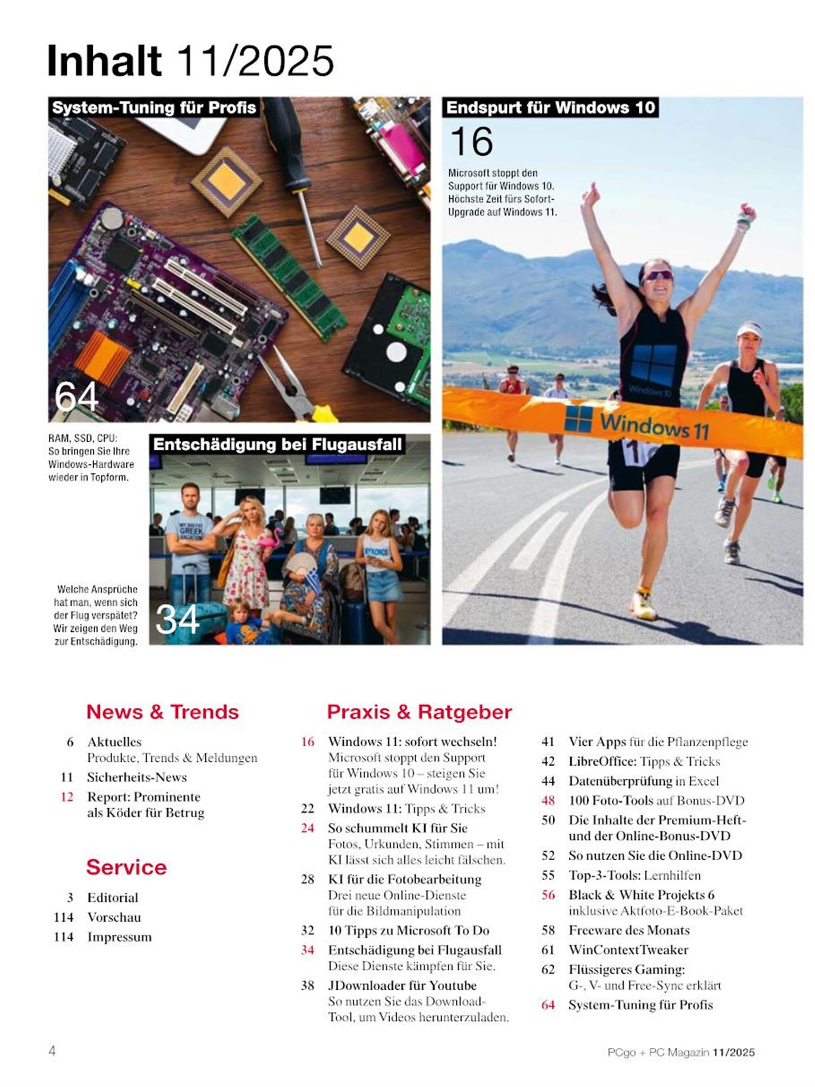 Das PC GO + PC Magazin besteht einerseits aus einem informativen Magazin, andererseits aus einer physischen DVD voller nützlicher Software und kleiner Tools. Eine weitere virtuelle DVD (zum Download) liefert mehrere Vollversionen. (Bitte beachten Sie, daß die DVDs bei ePaper-Abos nicht enthalten sind.) Inhaltlich richten sich die Beiträge vor allem an fortgeschrittene Computernutzer und enthalten sogar den so genannten „Profi Corner“, der professionelle Programmierer ansprechen soll. Aktuelle Themen werden durch Kommentare der Redakteure, Interviews aber auch verschiedene Workshops und praktische Tipps ergänzt. Das Motto lautet dabei „Mehr Tiefe, mehr Praxis, mehr Trends“.