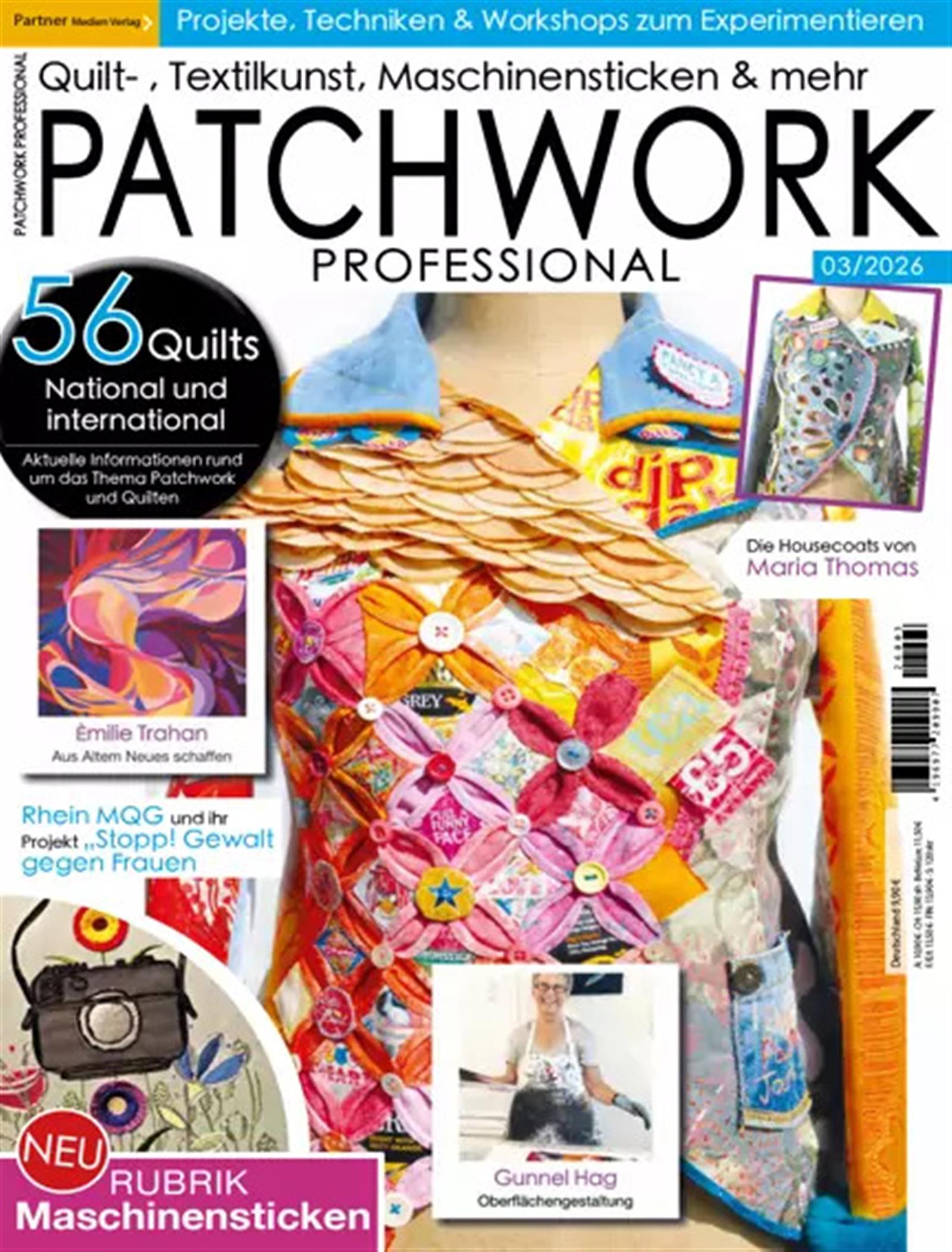 Die Kunst des Patchwork wird fortgeführt durch ein Magazin, das sich intensiv mit den Themen Quilt und Textilkunst befasst und in dieser alten Tradition eine Herausforderung sieht: die Patchwork Professional nimmt diese Herausforderung an.